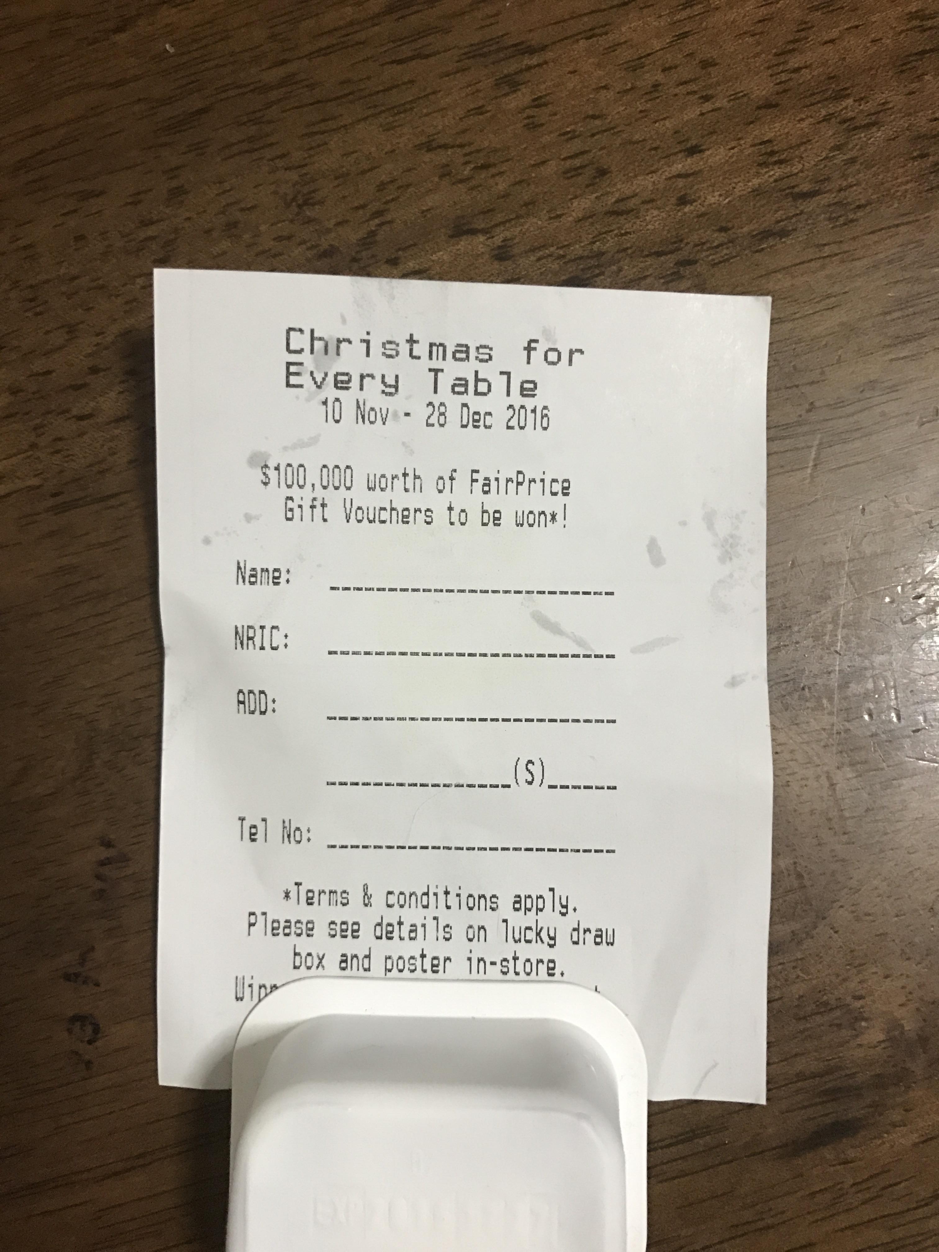 中过一次fairprice的500块voucher今年5月"Sedap Food Together-gether" Lucky Draw