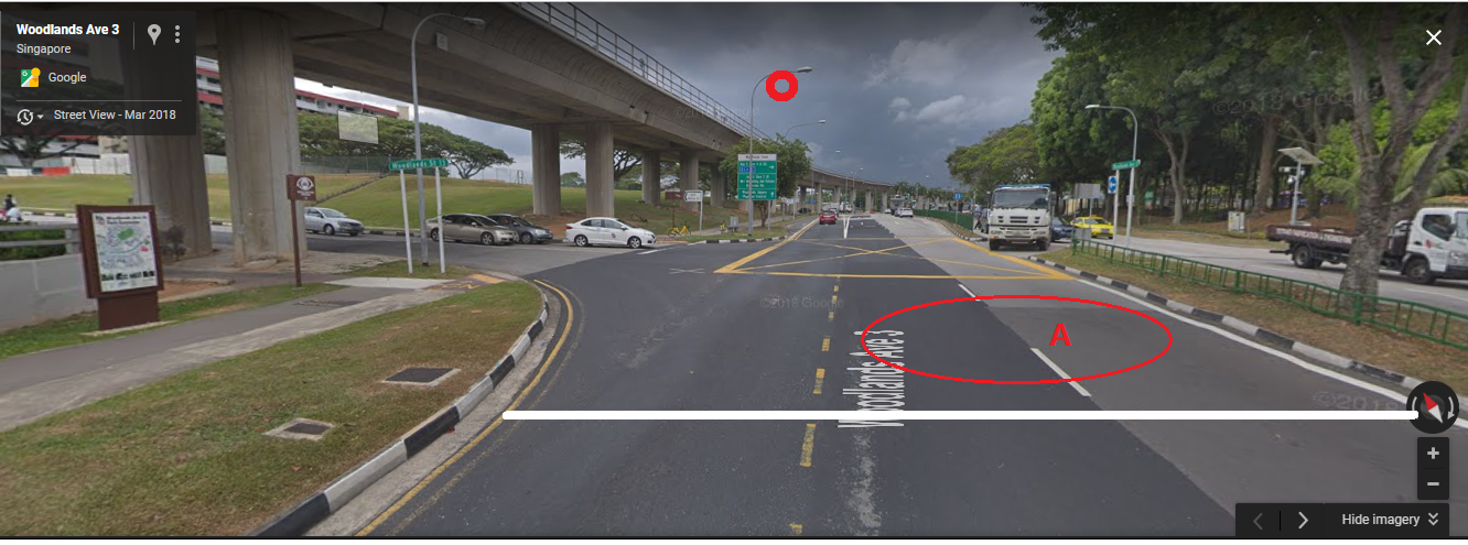 qqdriver • • 22527 次浏览如图所示这个路口,google实景图还没有及时更新,现在的状态是加了红绿灯来控制直行和对面车道右转。我用灯杆上的一个红圈表示红绿灯。