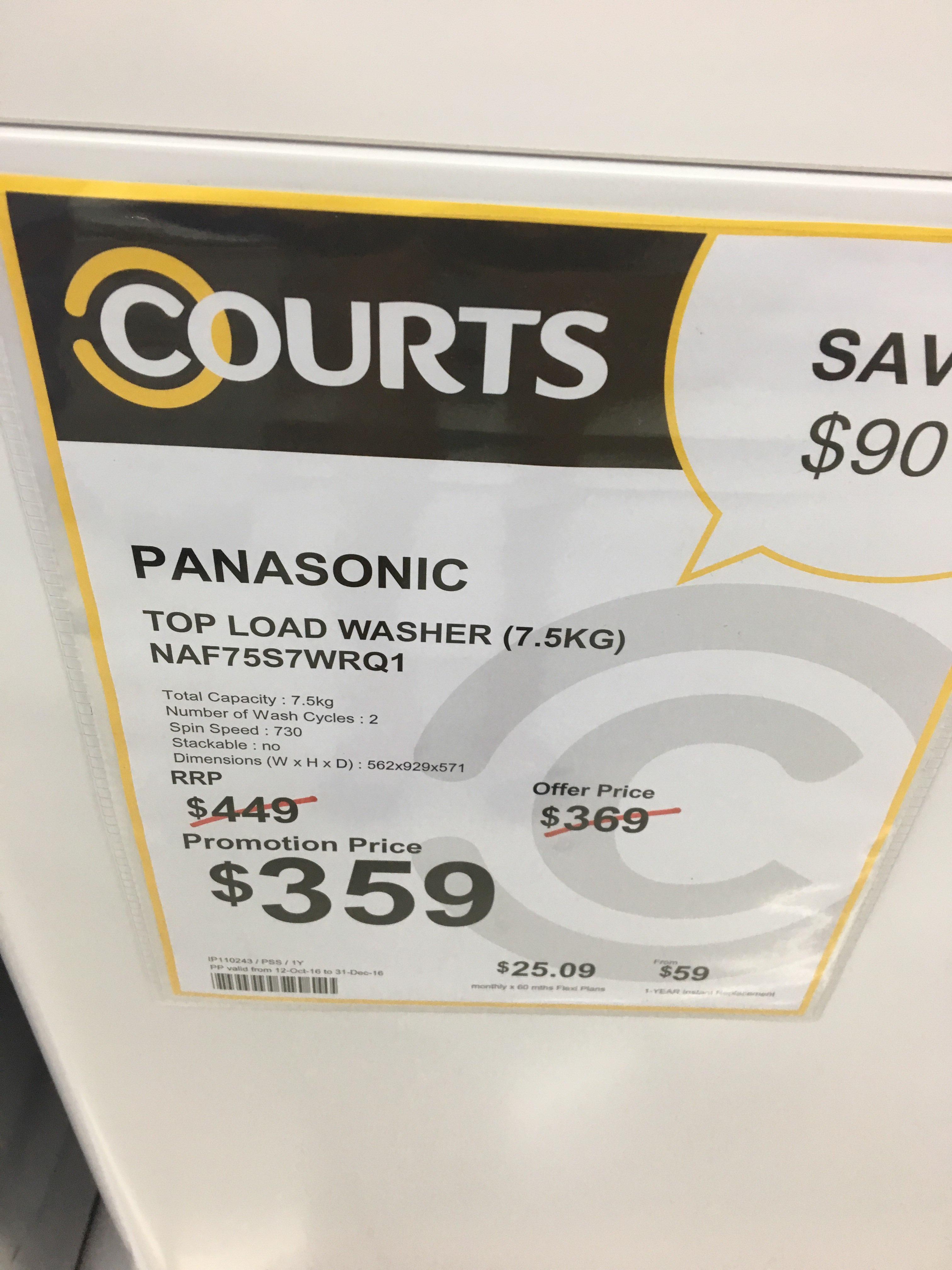 刚刚买了松下top load的去朋友推荐的组屋楼下的店买的,310,包运,包丢,周一送。好过courts