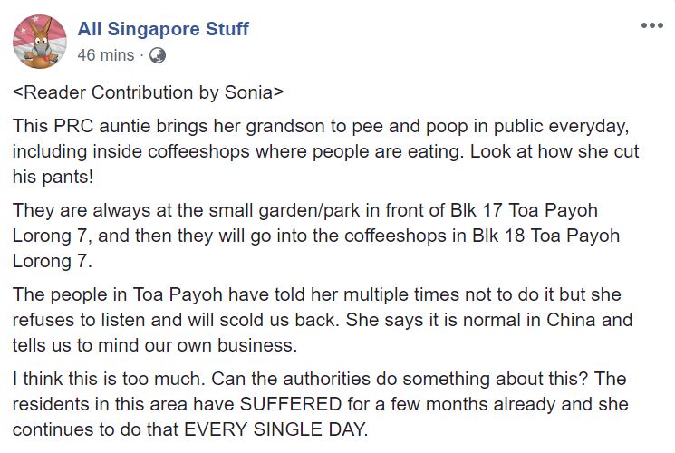 "This is normal in China!” – Woman who brings her grandson to poop in public lashes out at Singaporeans"