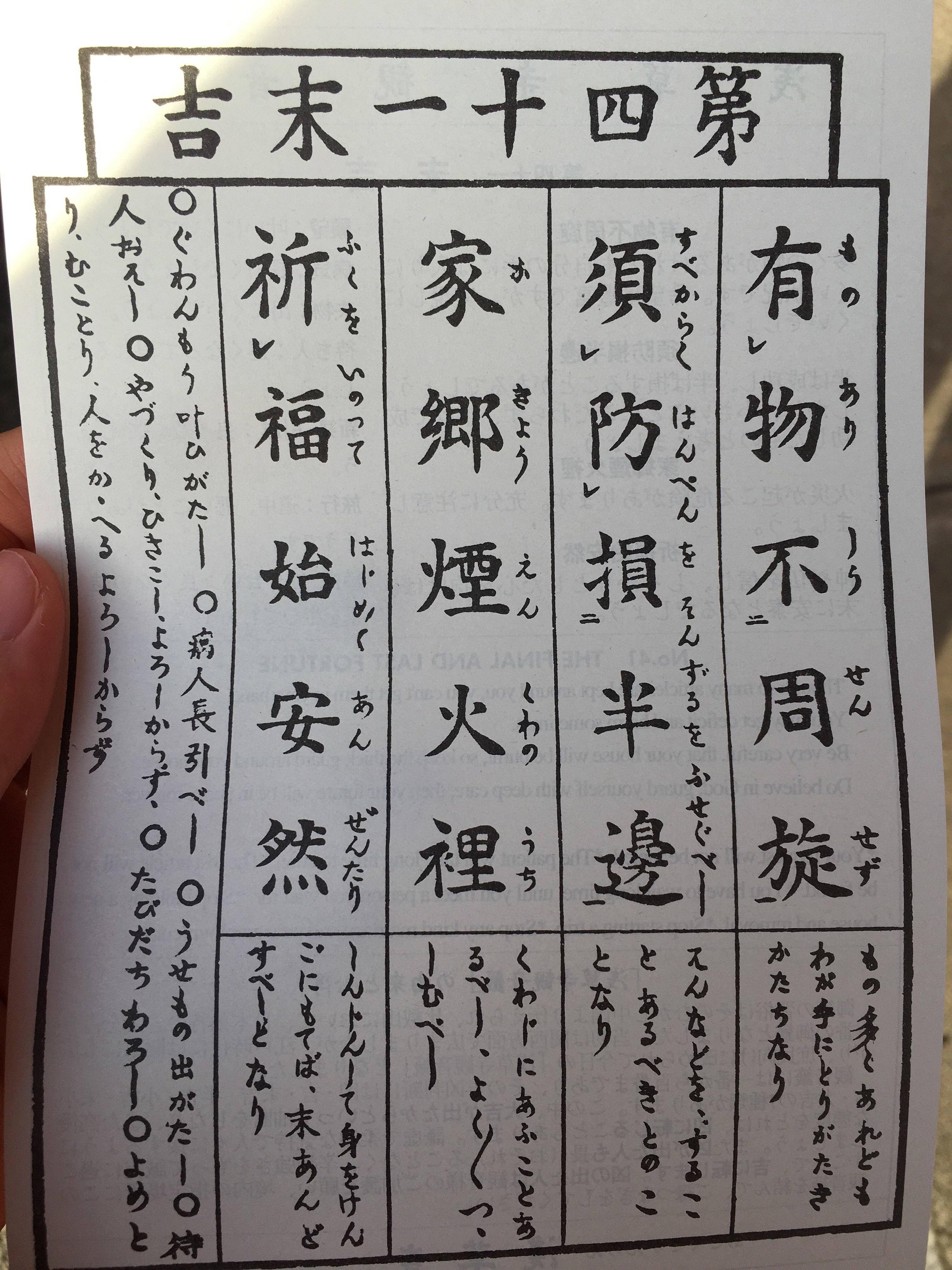 传说中凶签率偏高的浅草寺,我也硬着头皮求了,结果好准。。末吉签(不是凶签我是不是就该满足了-_-),大概意思就是虽然生活苦逼各种不顺家里还会有火灾(赶紧去买财产保险的节奏么=.=),只要相信组织相信神,生活还是有药可救的o_o