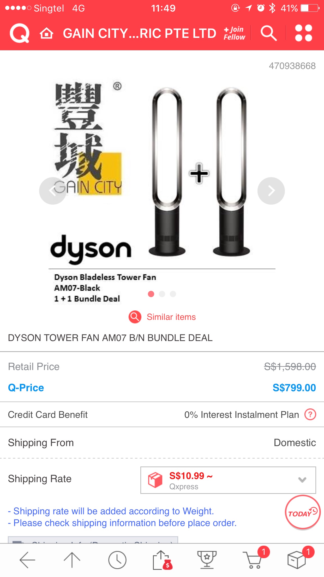 吐血了,gain city 在qoo10上买dyson bundle两个am07 只要799.....