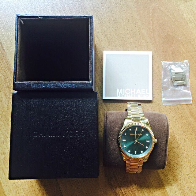 Michael Kors 金表出 SGD200This unique Michael Kors MK3226 analog quartz watch features a green dial with a gold stainless steel case and band.