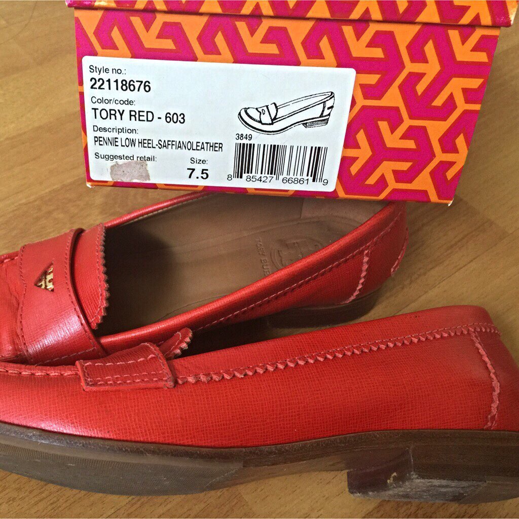 tory burch红色牛皮乐福鞋 100
