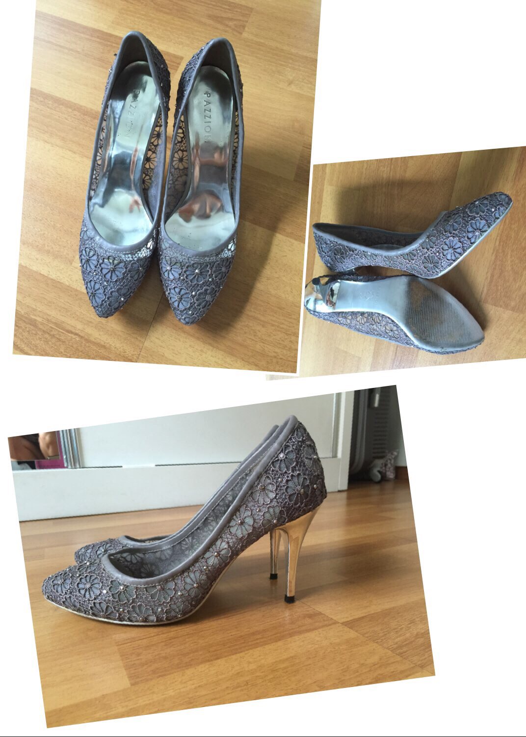 pazzion 灰色蕾丝水晶高跟鞋 10