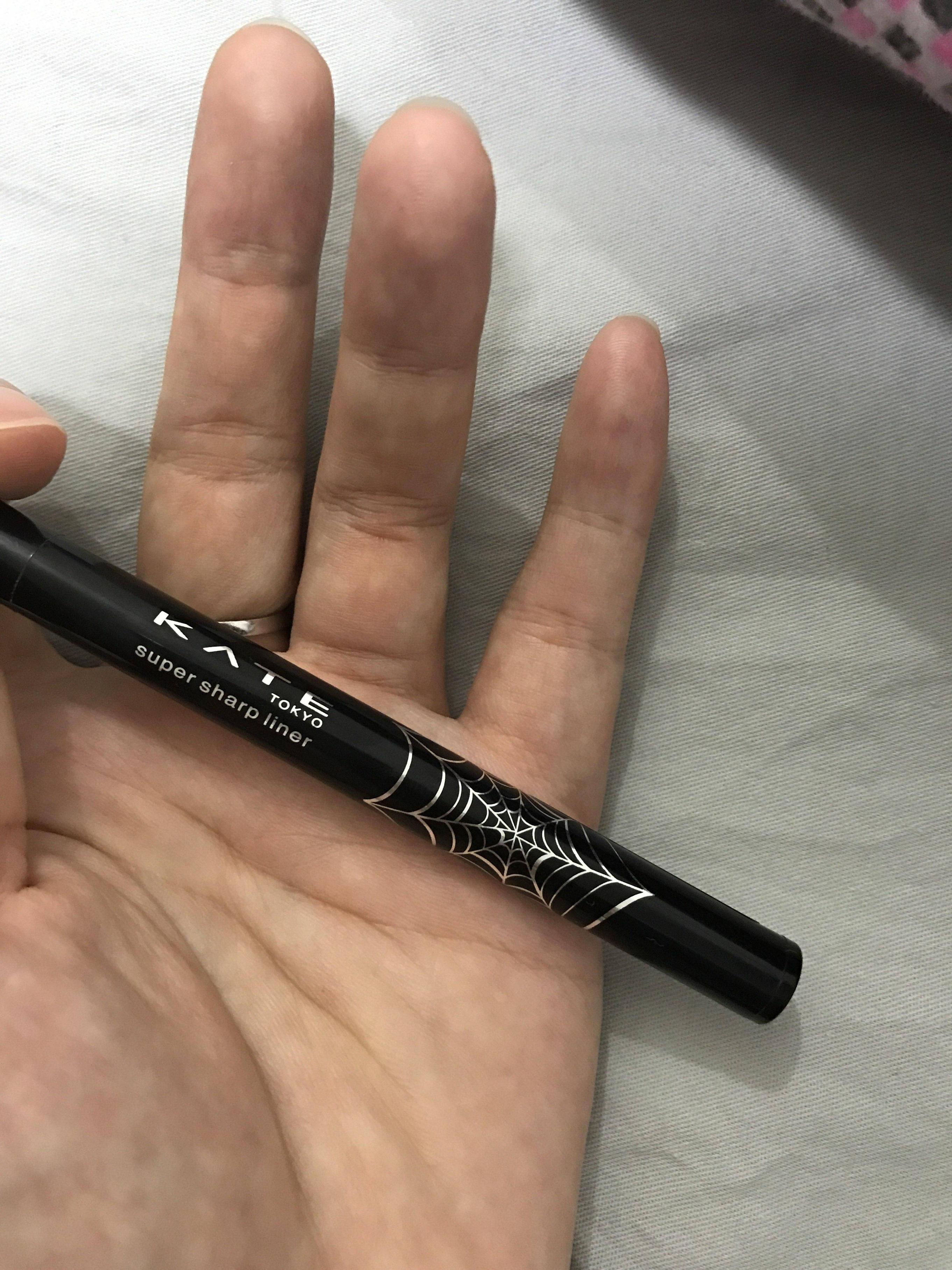 还有kate 眼线笔也不晕!上次在嘉娜宝sale 上买哒,才8块还送一个染眉胶,上面印了个蜘蛛网图案的那款,太值了,感动哭,不过我也按照版上妹子说的涂了防水睫毛膏,完全不晕,一整天不晕。。