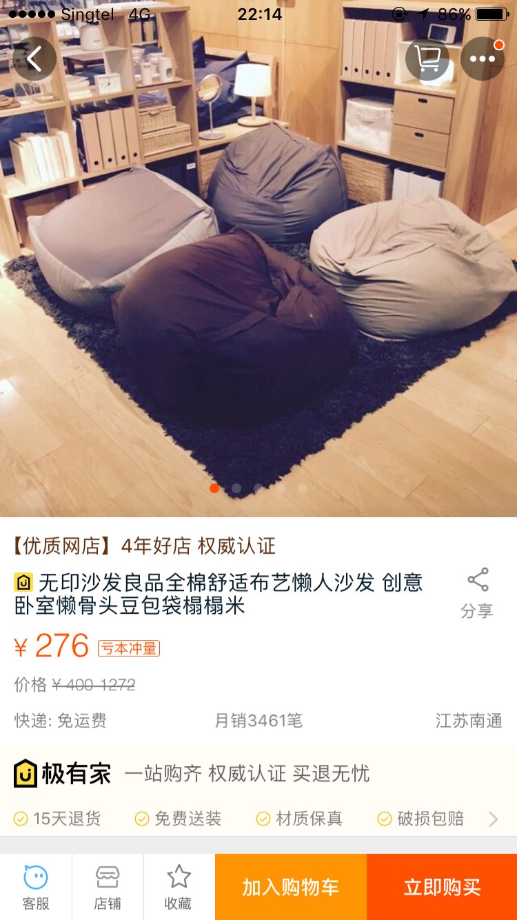 muji 的豆包真的很舒服啊!上次raffles city muji 开业 100块一个 应该是最划算的啦!