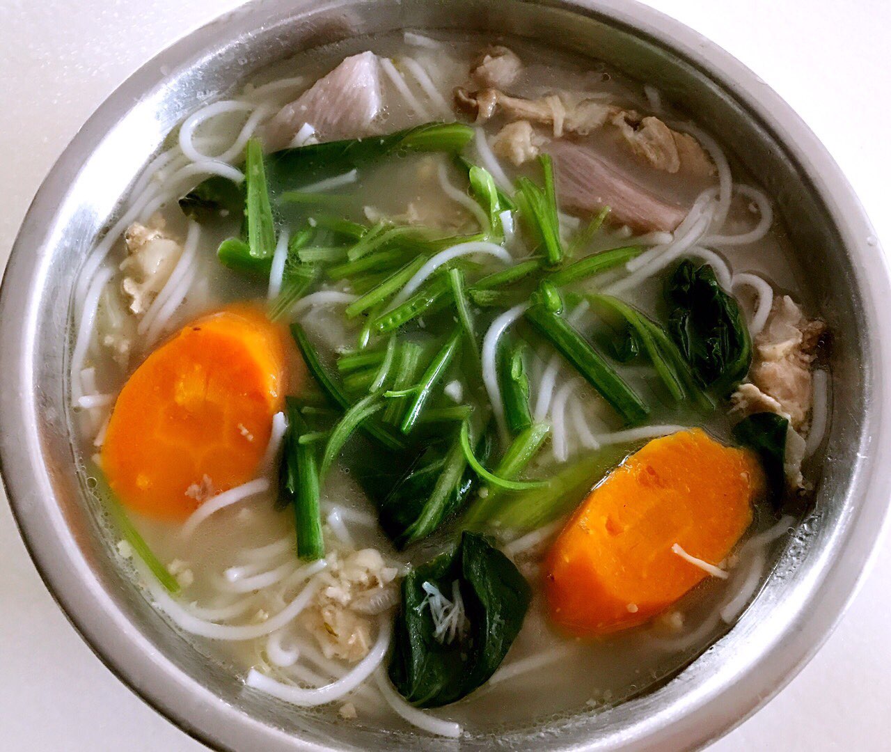 真巧!昨天我也在朋友圈秀我的小幸福.就是吃一碗老妈煮的热腾腾的 肉骨+干贝+红萝卜+芹菜粉干(代替家乡的泥鳅炖粉干)