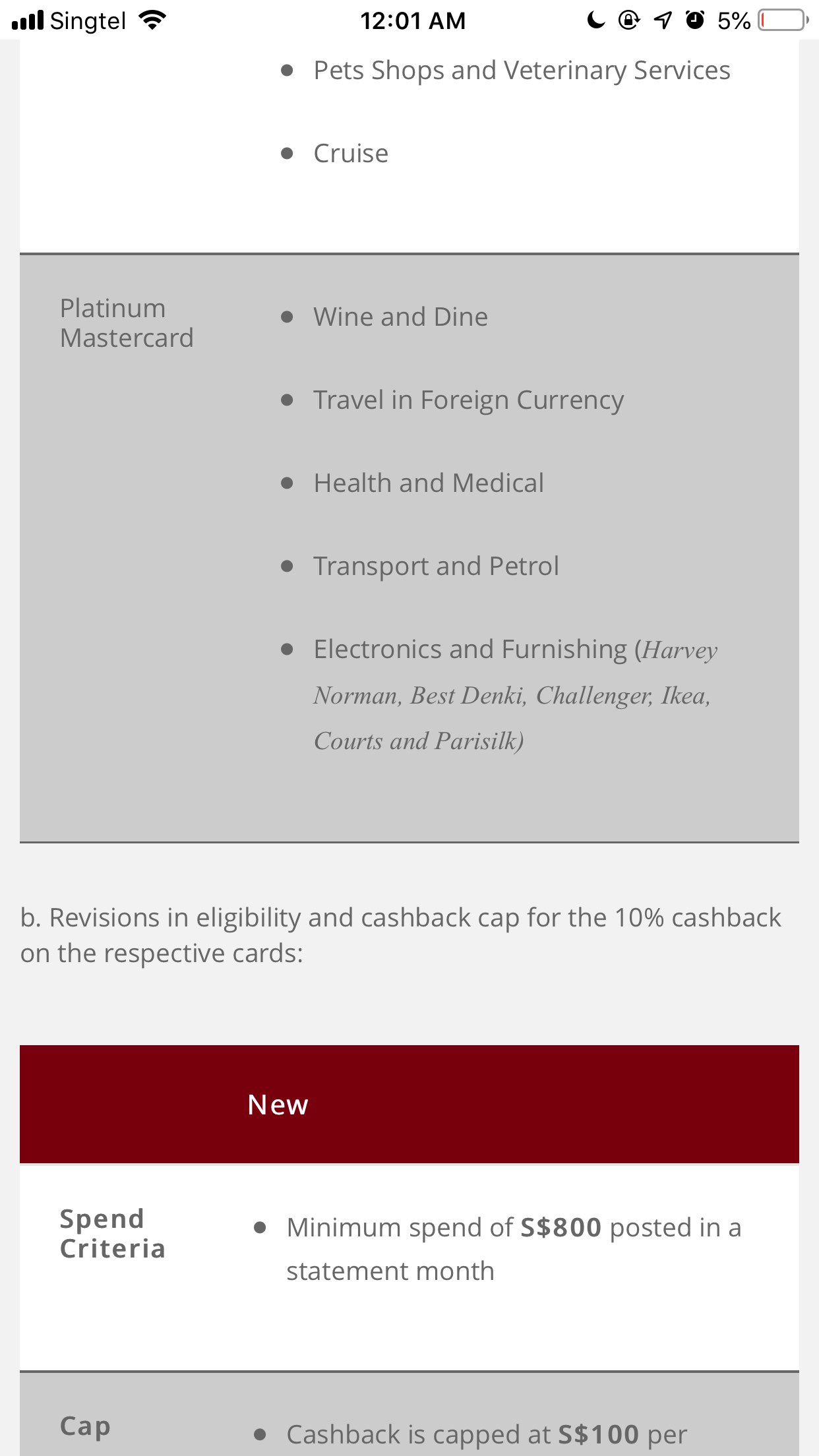 应该比较多的是wine and dine和transport吧其他的health应该和visa里面的beauty 会有分别,应该大部分日常的Watson 和Guardian 购物算不进去。electronics 一般也是大额不频繁支出,也难每个月都有。如果只有两项的话每月顶额40却要花起码800,最多也只有5%的rebate,和很多其他的返现卡比起来都缺乏优势了吧。