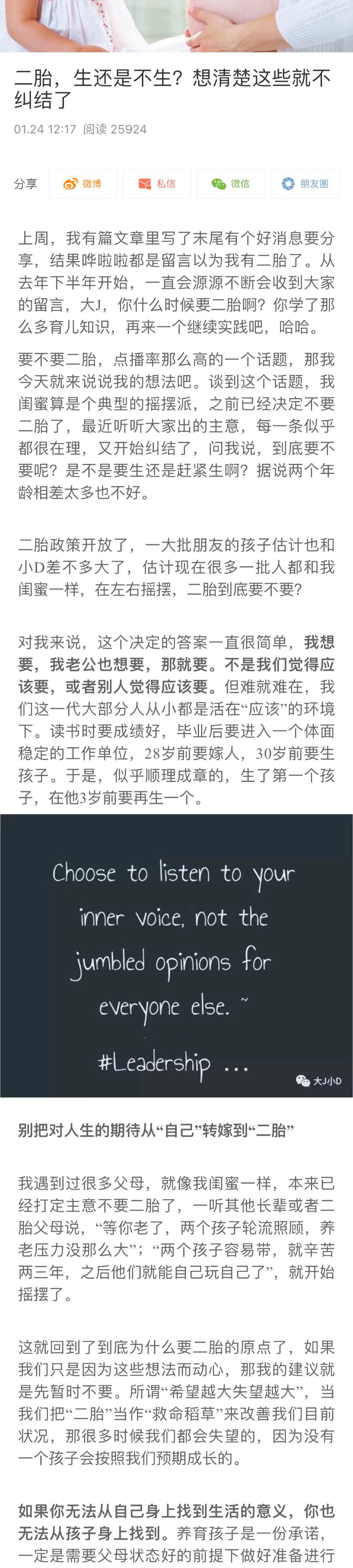 谢谢啦也看她的公众号。感觉她更倾向不要二胎。