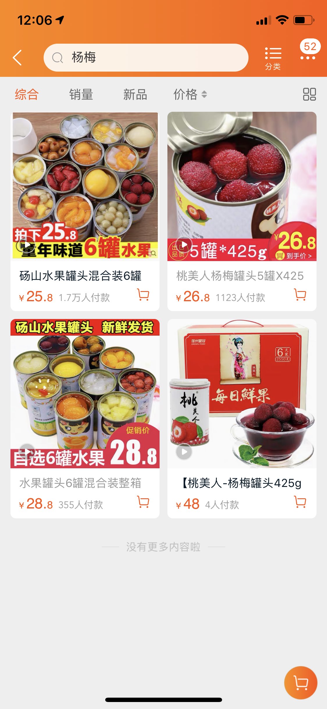 里面杨梅罐头就一款,26.8元,五罐,包邮。 -