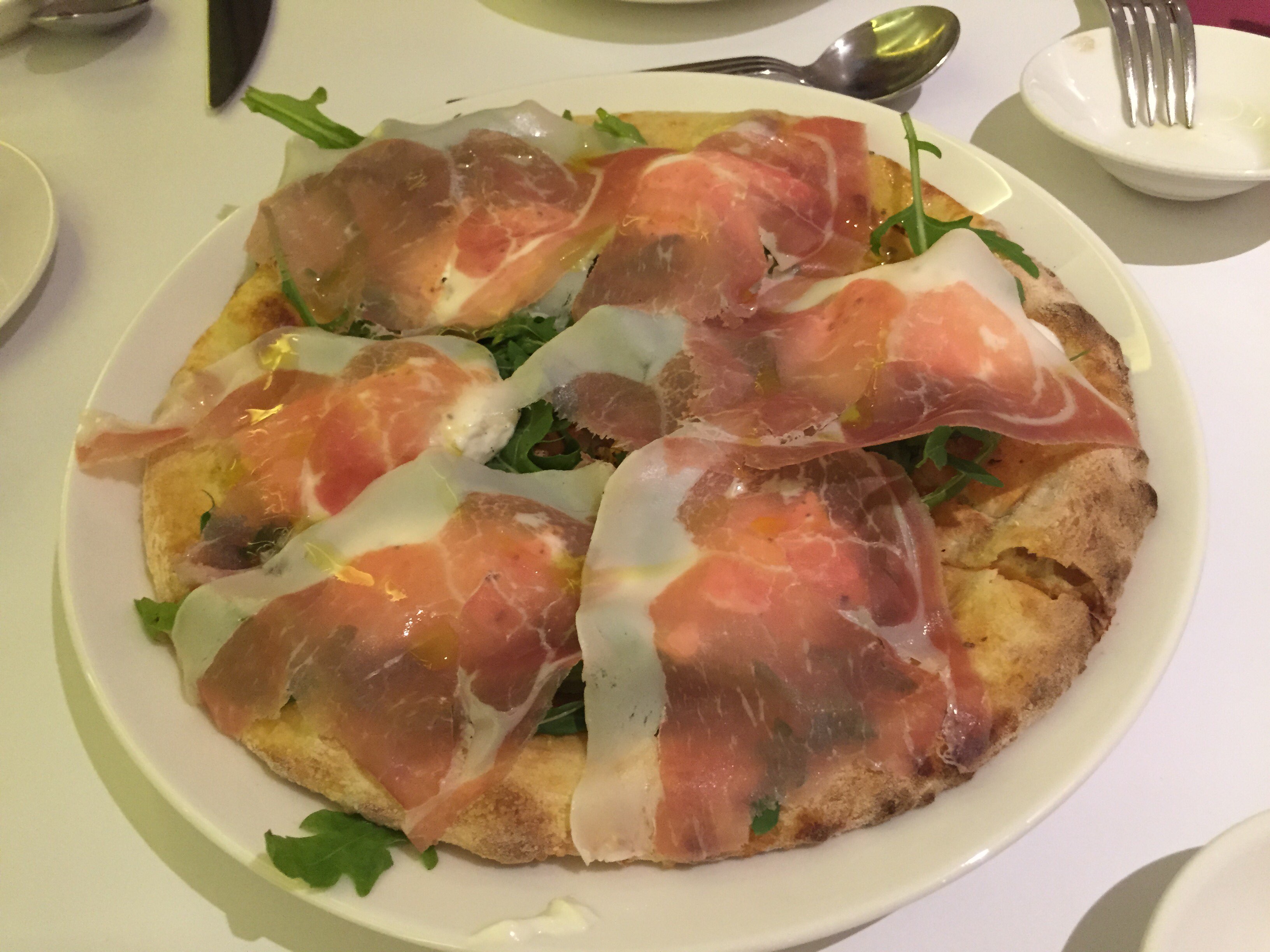来意大利餐厅就点了披萨第一次看到披萨做的这么随性的,和必胜客的完完全全不一样,但是不得不说,这个味道是很赞的,首先饼不厚而且很脆,香香脆脆很美味,上面的芝士么?冷冷的,可能是为了降低油腻感吧?反正很爽口的芝士第一次吃到,还有薄如蝉翼的培根片,看起来好像生的,还有看起来好像生的蔬菜,但是这么组合味道真的真的很赞!和外面那些妖艳贱货完全不一样,非常清新脱俗!