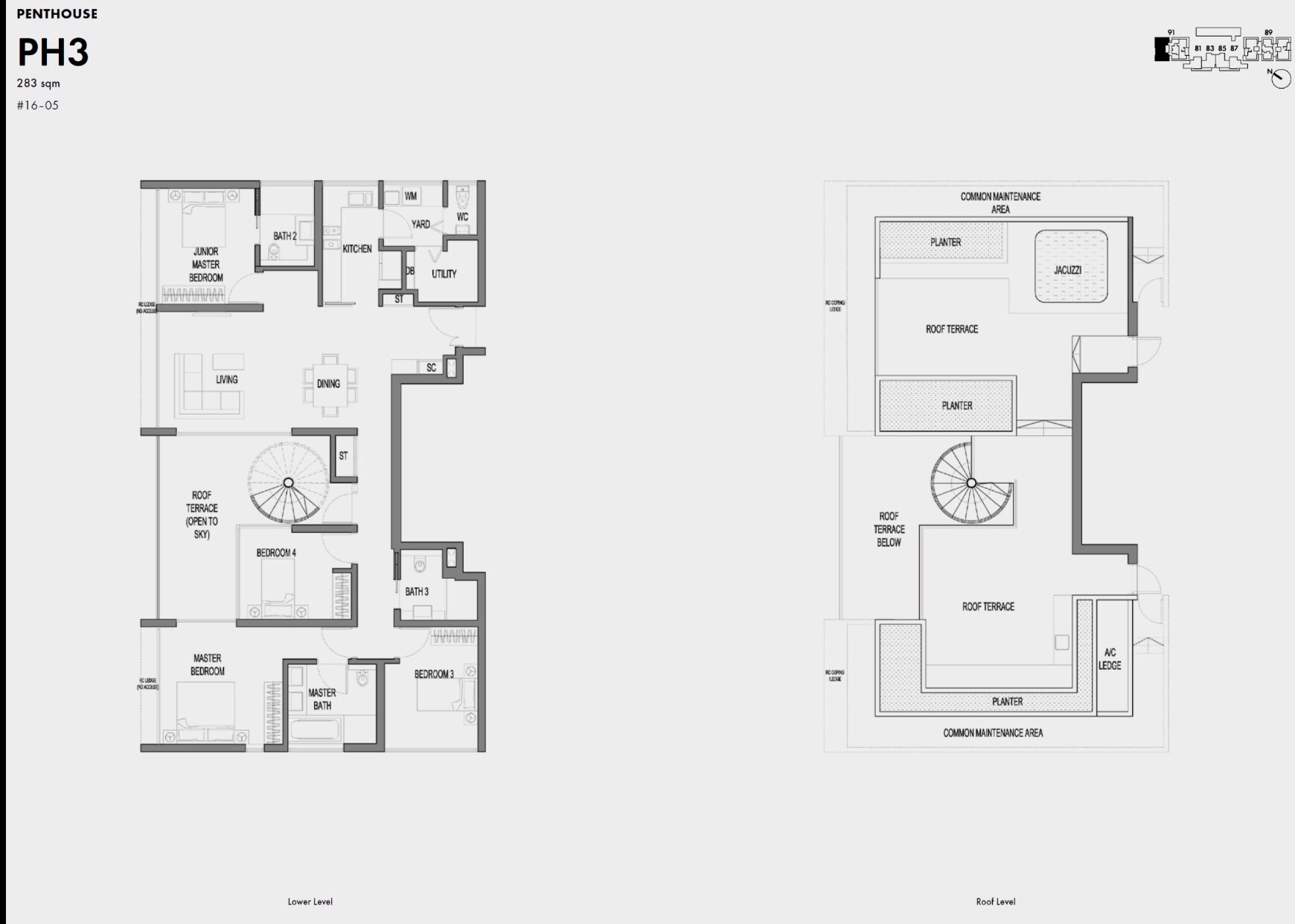 Marine Blue 其实还没卖完主要是房型不太受买家青睐,要么有挑高设计(大约是6米高),要么有非常非常非常大的露台(房型正常点儿的两房卖完了),这些都要算到面积里面,因为是永久地契,地点又好,靠近市区,靠近在建的马林百列地铁站和多个购物商场,一公里内有包括道南在内的四所小学,价格也不便宜. penthouse 有4房的房型,对照楼主主楼的要求,我觉得基本符合楼主的所有要求,就是预算需要 $4.1x Mil. 房型附上供参考. 不过,我觉得有这个预算的买家,选择太多了,Marine Blue 没什么优势.
