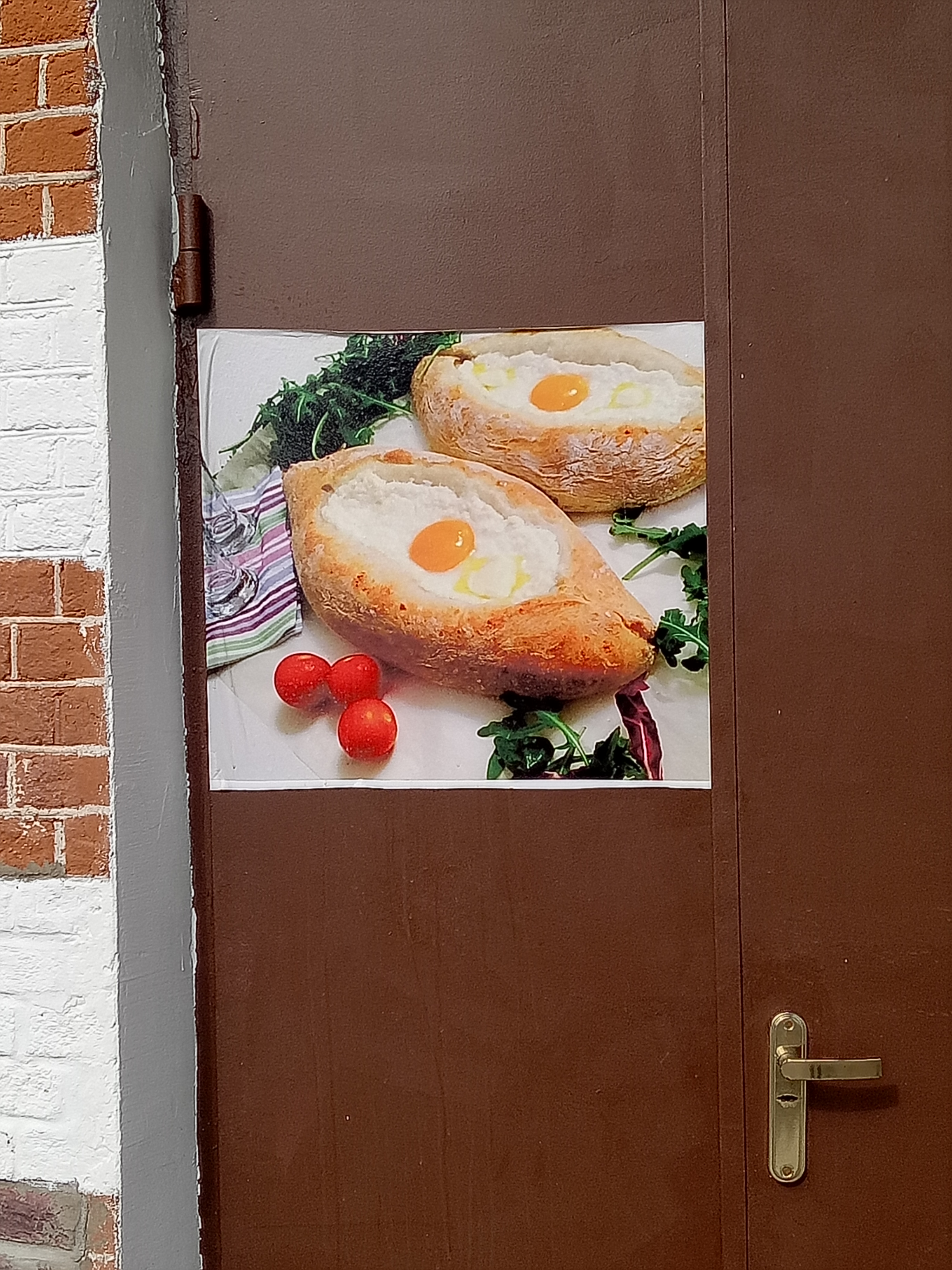 走的那天早上,我们在旅馆办公室门口敲了半天的门,没人。调头要走时,里面探出一个乱蓬蓬的头,单薄的旅馆姑娘刚睡醒的身影。她邀我们进了办公室,听我们说明来意:需要去车站的出租车。她示意我们在沙发上坐下,把背包放下。其实我们对一天的行程早有规划,来退房也是特意掐着时间的,谁知这姑娘并不打算要我们着急。在她的办公桌后,她有一个漂亮的小厨房,就在那儿,她像只手忙脚乱的小蜜蜂,开始替我们做起早餐来了!我俩面面相觑苦笑,出于礼貌,还是乖乖在沙发上坐着。咖啡在小巧的电池炉上冒出香味。面包和格鲁吉亚奶酪。我突然对吵醒这姑娘的美梦感到有些愧疚了。