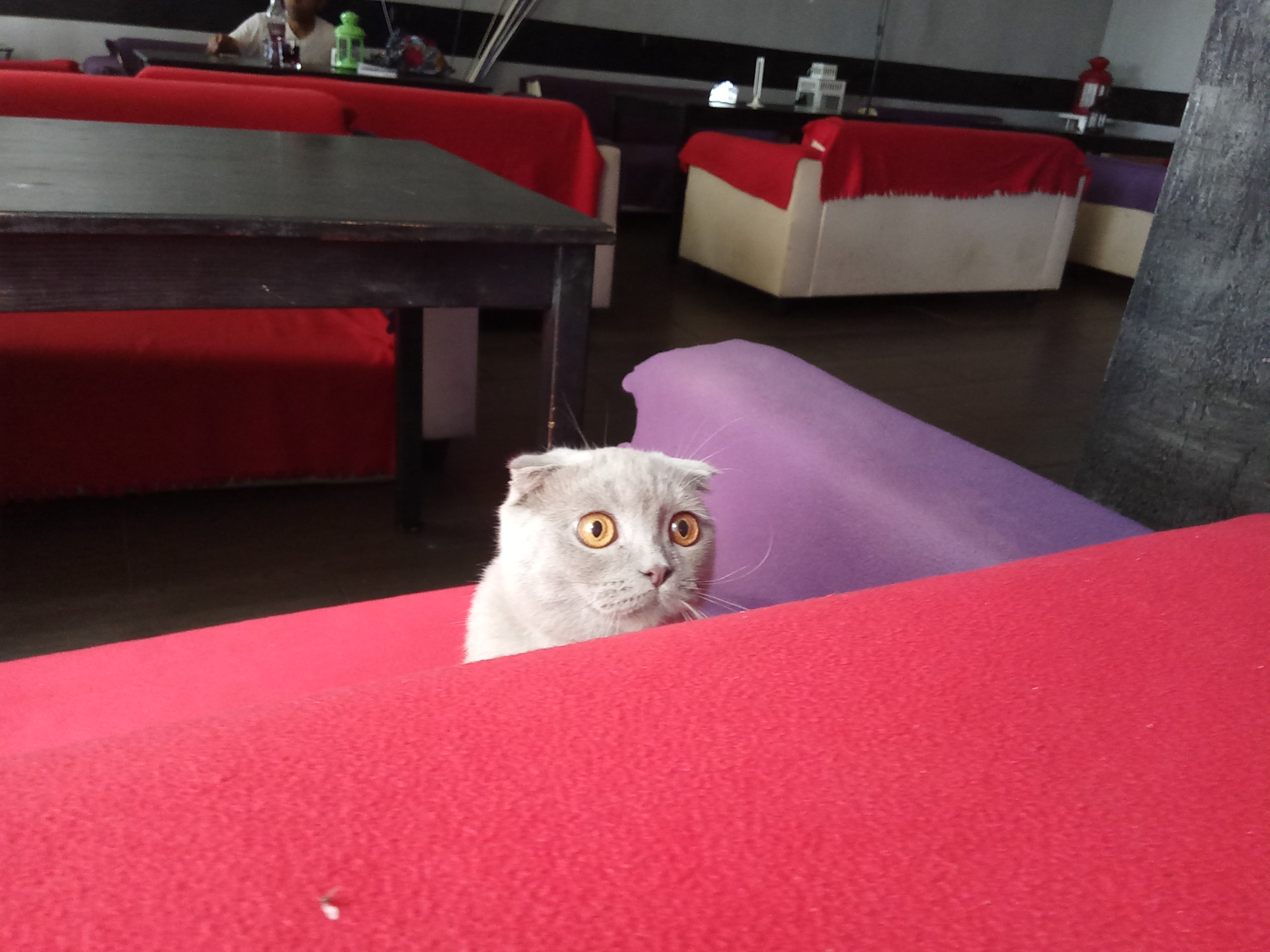 一只身手非常不灵活却喜欢爬上爬下的折耳猫