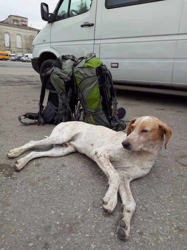 我们打着咖啡香的嗝,暖和和地离开小旅馆,上路。一路春光明媚。车站照常破旧,啥也没有。于是雇了一只狗替我们看行李。一个说俄语的老婆婆叫我,deervichika(小姑娘,女儿的意思,总让我联想起年轻的鹿姑娘),比划着,大概是叫我帮她看行李。我有些戒备地点点头,但没有靠近那个包。谁知道里头是啥呢?但是我又为自己在危险国家留下的积习感到悲哀。在阿布哈兹火车站,很多人都把自己的行李随便放,人随便走开,也很放心。