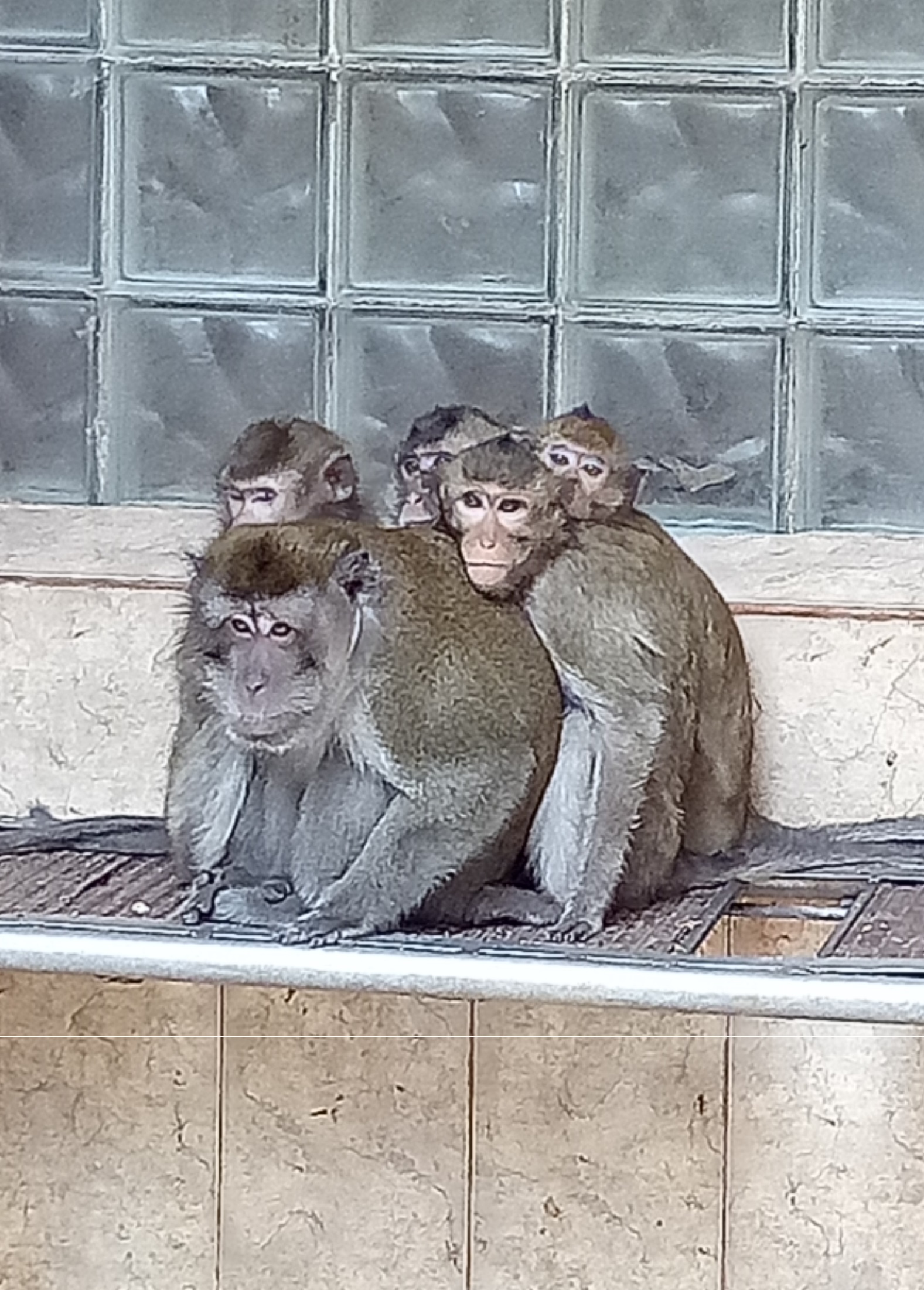 现在的猴子们其实已经跟太空沾不上边。这个基地如今只是一个条件简陋的猴子园。成排的猴舍里,大小猴子挤在逼仄的笼中,有的惊恐,有的狂暴,有的抑郁,很多穷极无聊。一只大公猴,是唯一一只有母猴和小猴陪伴的,大概是这里最幸福的猴了吧,一直无聊地在笼子里踱步,眼见他从地上捡起橘子皮,石子,向脑后朝天丢去,再精准无比地一一接住。一只公狒狒无望地冲击铁门,门的那边有一只青春姣好的母狒狒。但他的另一个同伴就似乎已经放弃全部的欲望,坦腹睡在地上。