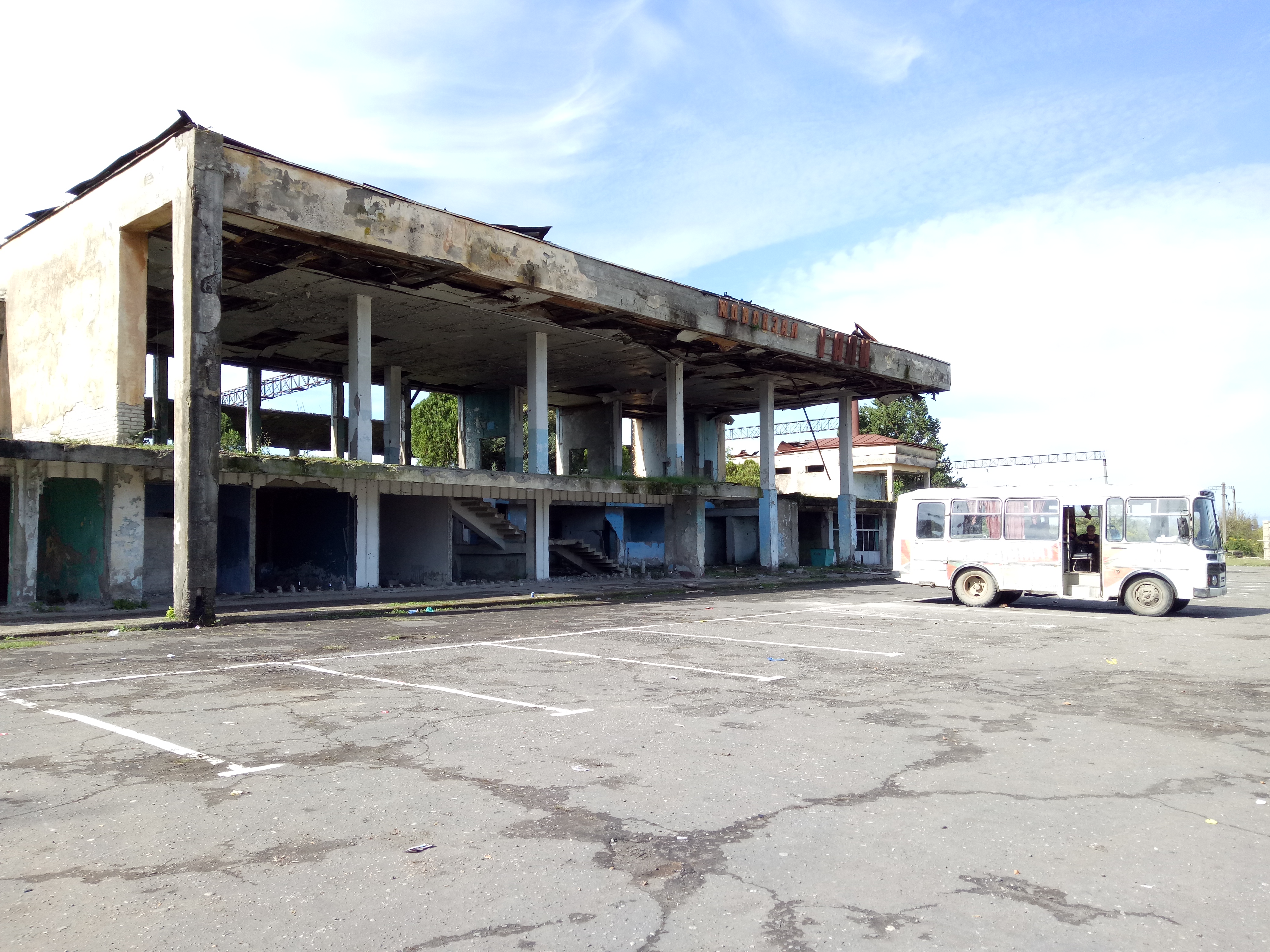 进入阿布哈兹,坐出租车来到附近的车站。这车站犹如电影里的鬼屋,一派空洞,破败。一辆公共汽车在孤零零地等待。几只穷形尽相的野狗,夹着尾巴,耷拉着耳朵,过来嗅嗅又匆匆离去。什么时候才会有下一辆车?不晓得。我们尝试着在附近走动,找出租车去苏呼米(阿布哈兹首都),一路上却没有车经过,更连个问路的人也找不到,只好折回。
