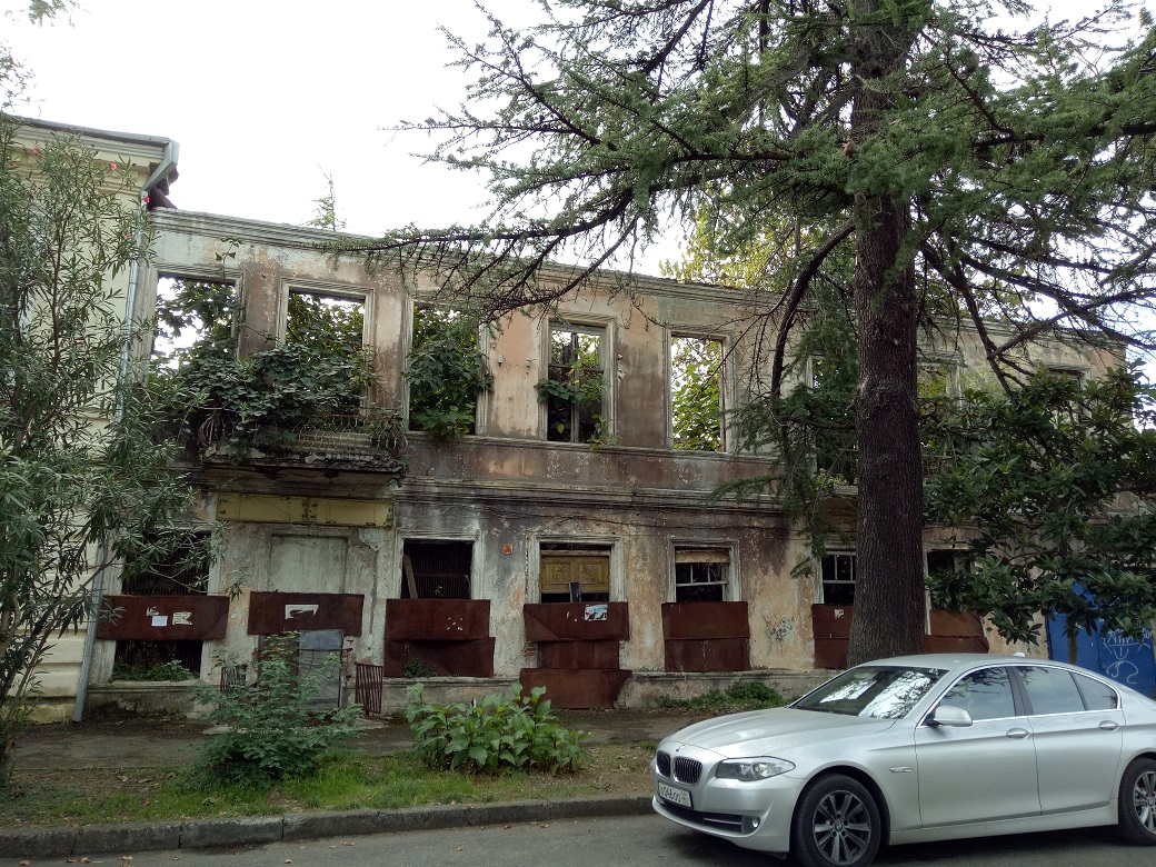 20多年了,阿布哈兹至今没有想要修复这些废墟,乍想有些不可思议,然而,它在8千多平方米的地盘上,只有2万多人,确实没有需要。(可对比上海6千多平方米,人口为2千4百万)。那些“活着”的房子,带着商店或者餐馆的招牌,跟许多这样的废墟为邻,犹如活人和死人并肩而立,却毫不违和,甚至带着快乐,浪漫的情调。那其中坚韧的生机,令人心生敬意。