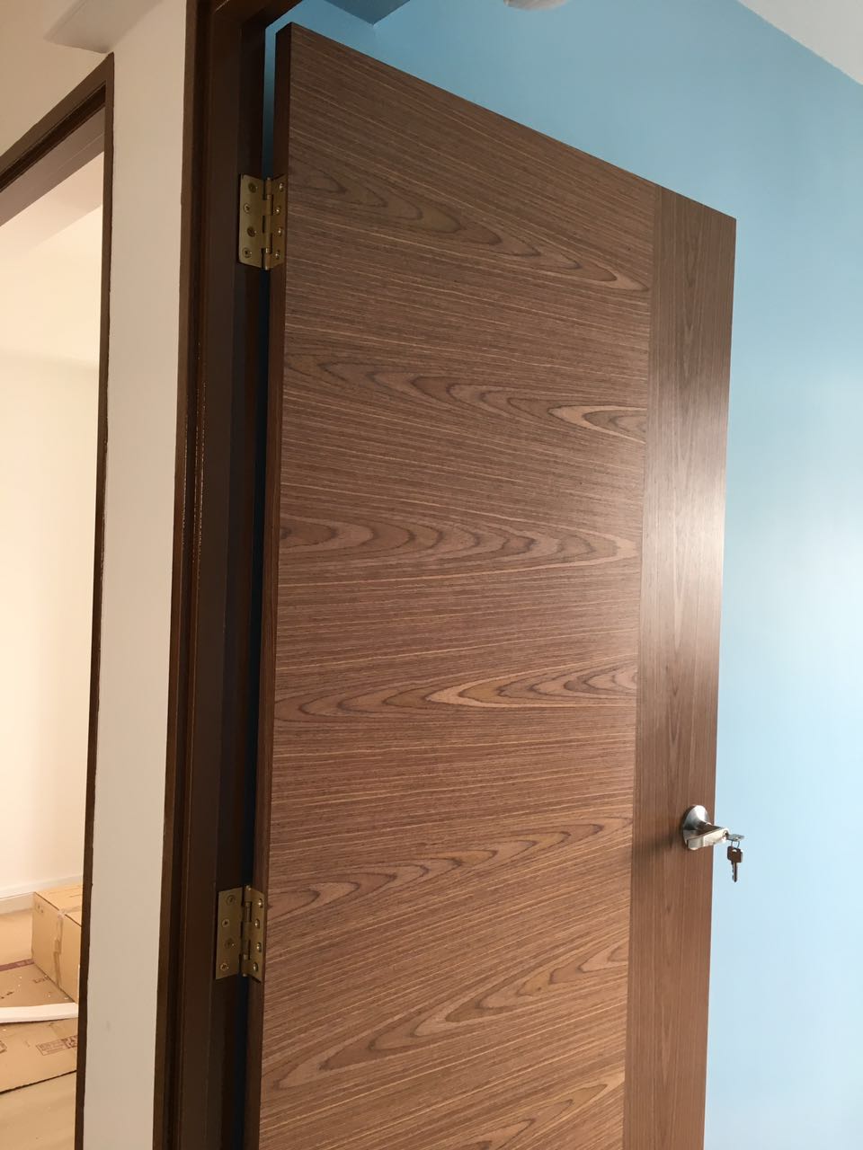 第三周:装好了房间门可是刚看到的时候觉得实在太丑了,就像两片木板随便拼凑起来的,我以为花纹不同的那个是围绕整个门的边,哪知道是这么拼凑在一起的,不过现在看习惯了也还好了。大家选门的时候一定记得问清楚看到的是否就是最后出来的门的款式。