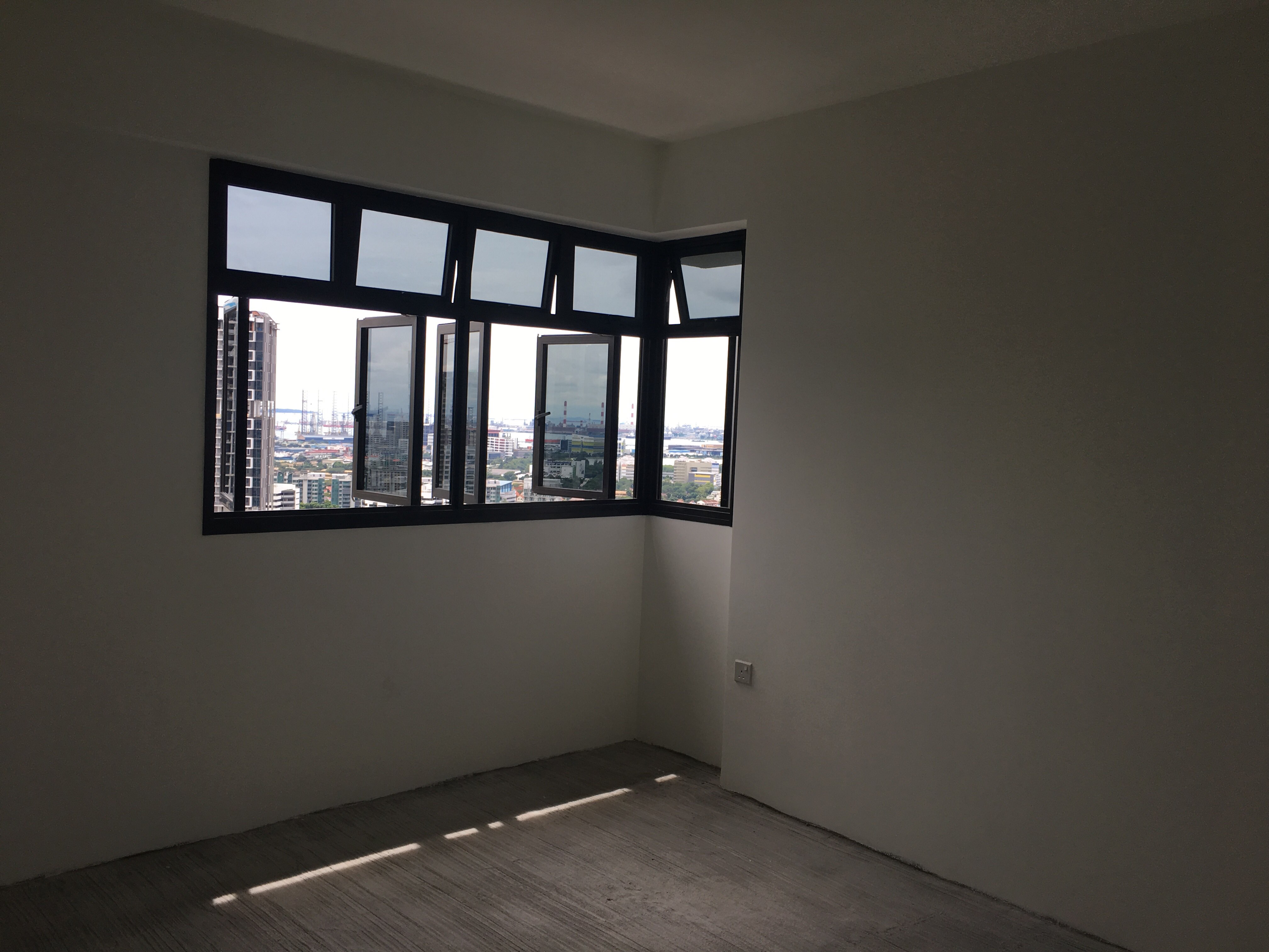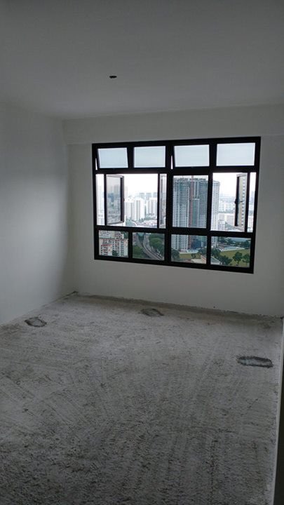 主人房我们没有选地板和门,所以除了厨房厕所和阳台,其他的房间都是水泥地,3个卧室门和厕所门的门上只有门框,也有人选了政府的地板和门,好像看着也还不错的样子,不过自己找装修商的手工也许会更好。厕所的地砖还不错,有一个房间的地漏没做好,冲凉的地方水居然往洗手盆下面的地漏流,不是留到淋浴头下面,这也导致后来这个厕所不能做玻璃隔断,不过也省了一笔钱。厕所的水盆很难看,质量也不好,一看就是几十块钱的,准备打掉换浴室柜,不过水管倒是预先接好冷热水,淋浴头也都做好,只需要买储水式的热水器就行,装修商说如果装快速热水器,反倒需要重新铺设管道,这点hdb帮我们省钱了。