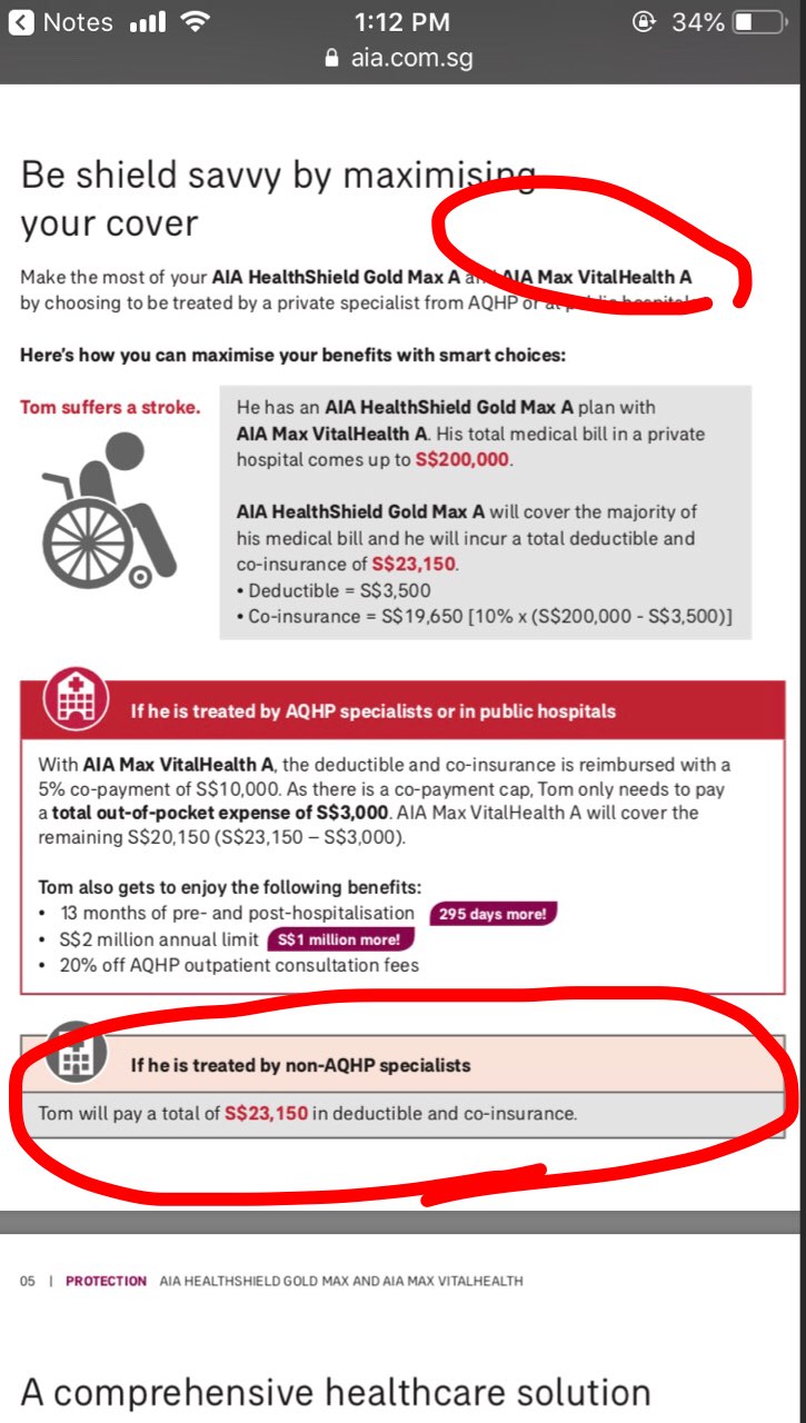 如果是去私立医院,看的不是AIA推荐的医生, 自付额一次是多少? 你上面只说到一年最多S$3500. -