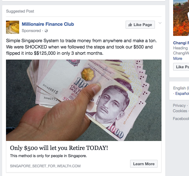Facebook 上面自动推荐的快速投资赚钱的东西,是假的吧?