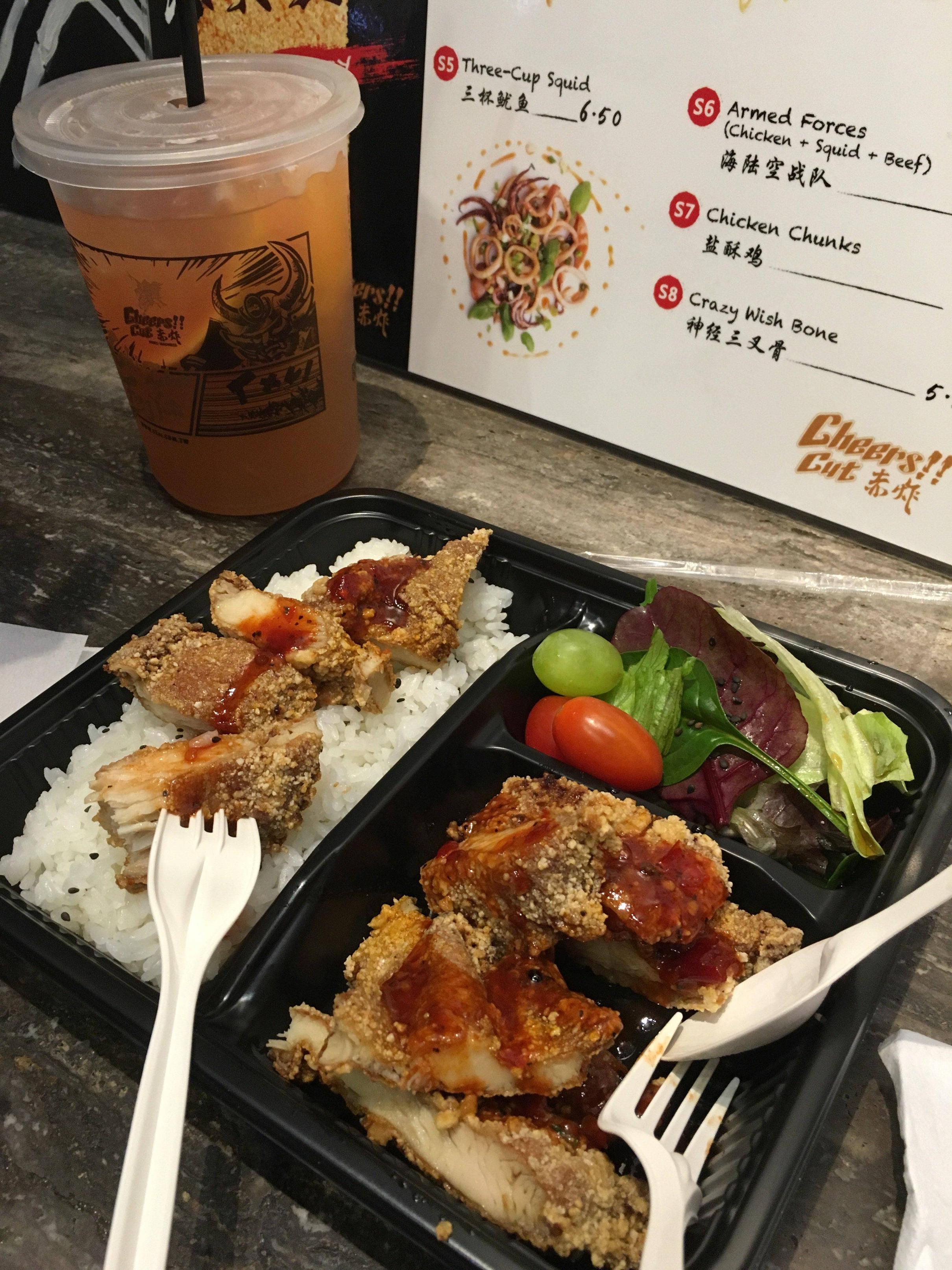 还OK,饮料超大杯的,里面还有柚子主要我吃到了鸡骨架!!我天,好几没吃了,味道也很好!