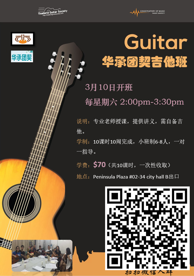 吉他班,地点city hall 3月10日开班 每星期六 2:00pm-3:30pm 请看海报