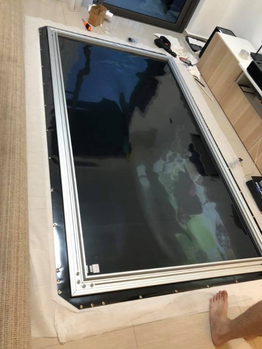本来要买硬屏的布幕,可是100寸的硬屏怕电梯进不了,到时候就只能自己扛上楼,所以放弃了,买了卷的布幕