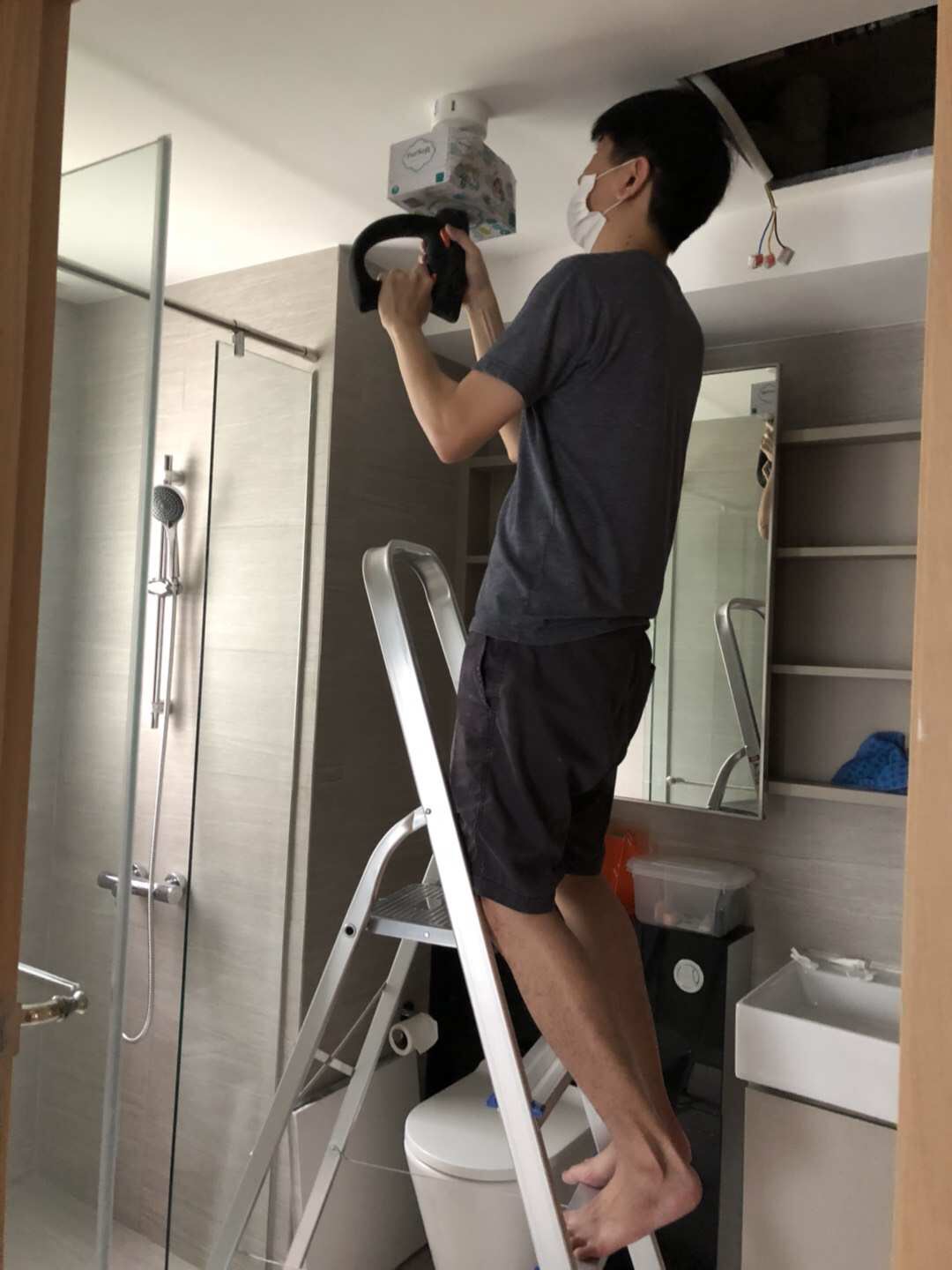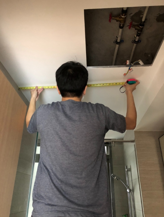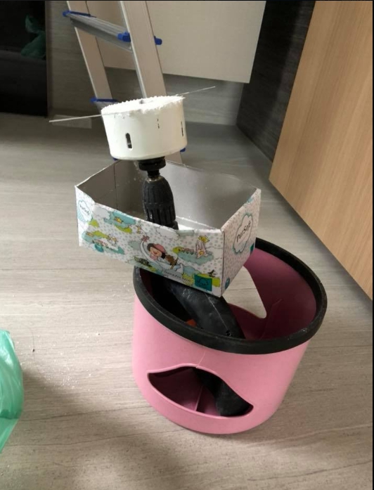 我们最开始钻是用了女佣房的厕所来测试,第一个就钻错了,石膏里面有铁板(拿来支撑的)所以女佣房厕所就有个洞,可以看到里面的铁板(应该是不锈钢还是什么,不太清楚什么材质,统称铁板)后面ec不是有一年的保修嘛,我们就让defect check来修东西的开发商请的工人帮我们补好了(钻下的石膏板要保留住才可以)