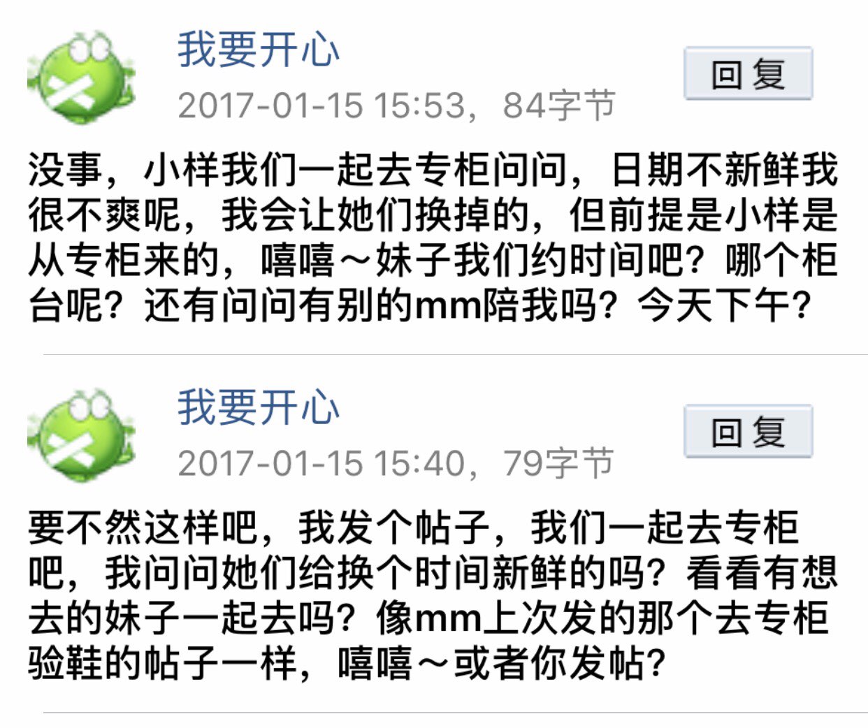 你收到后就开始各种质疑我 居然质疑我卖假货我也是醉了 要我是卖假货的 我卖了这么多次东西岂不是早被打死了 我说我可以提供在美罗和taka购买正装的小票记录 你也不信 让我情何以堪?居然私信我说要拿去娇兰柜台找柜姐把小样换成新鲜日期的 小样都是赠品人家怎么可能给你换?这不搞笑呢么 真要去换小样你自己去啊 我可不去 我整天去买和柜姐很熟她能笑话死我