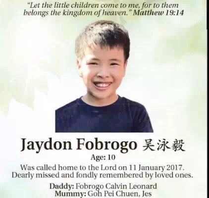 这位10岁的小男生叫吴泳毅,生前就读于南华小学,还有一名孪生的哥哥。