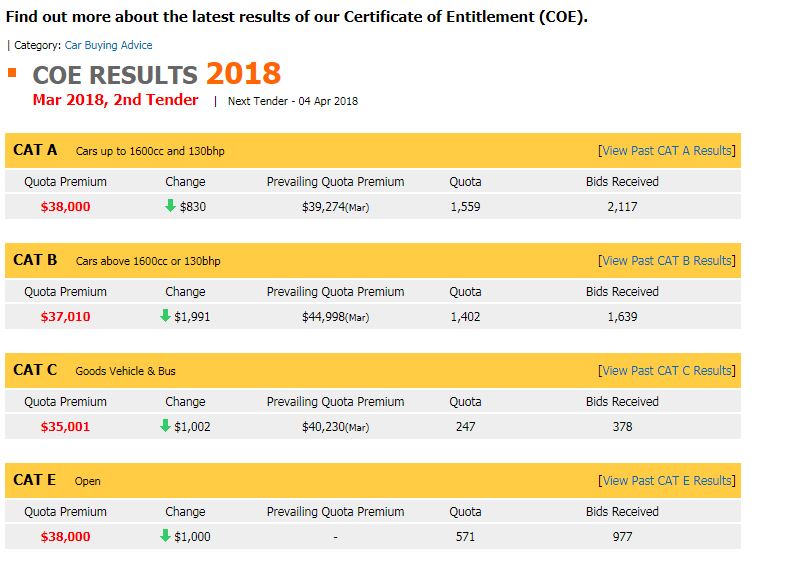 COE Mar 2nd Tender Results