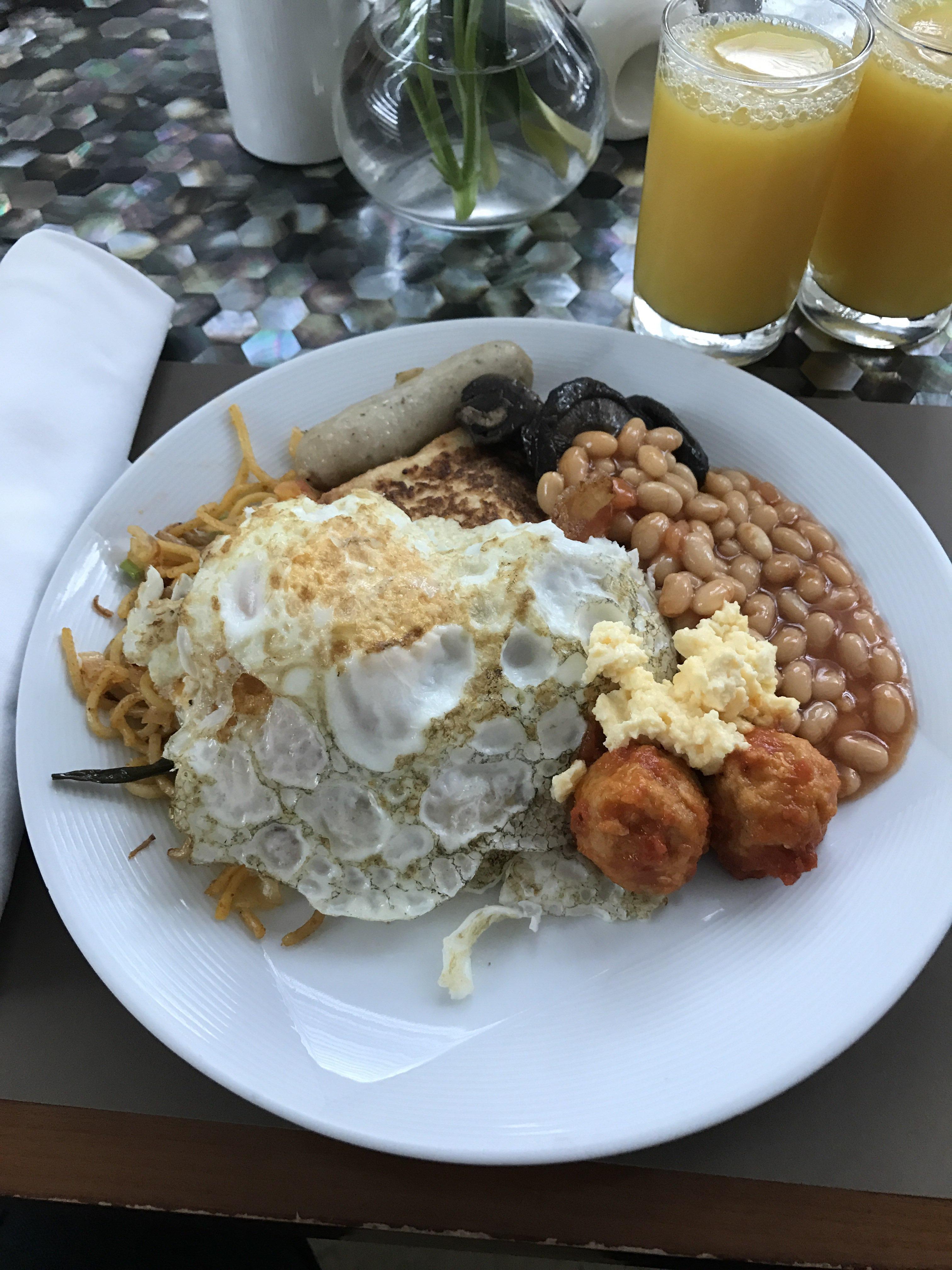这是酒店的自助早餐的感觉,还拿了两杯橙汁不过质量不咋地。一般这样的饭大伙都不拍吧?这有什么好拍的。