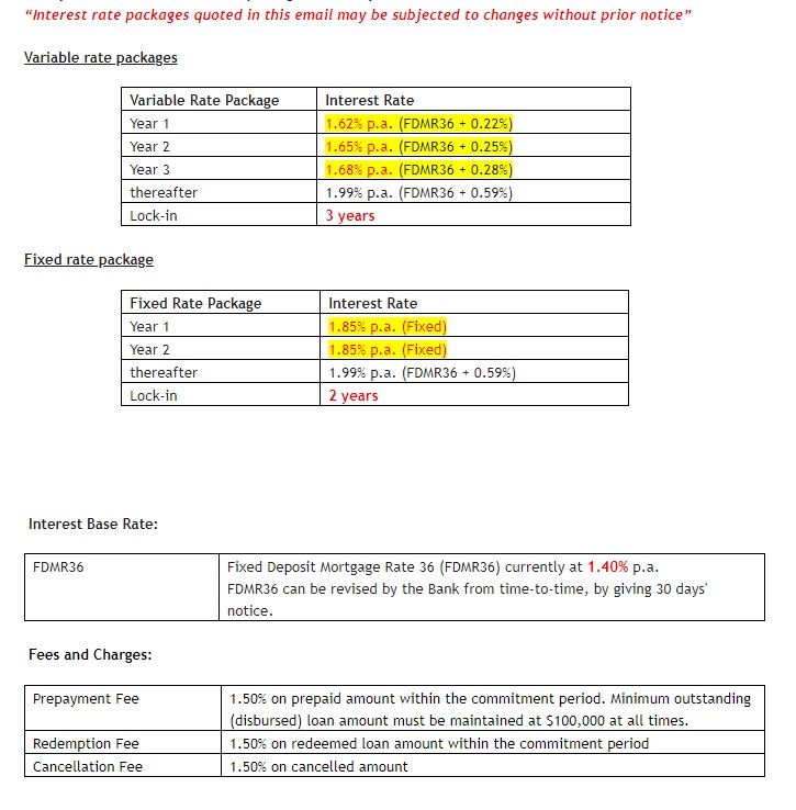 Yaxian • • 31931 次浏览大家好!这里有没有知道现在Maybank的房屋贷款的固定利率是多少?我的贷款配套即将到期,需要repricing配套,目前拿的也是固定利率配套的,锁定期两年,利率1.99%。现在有没有比较好的固定利率配套呢?请推荐一下。谢谢!