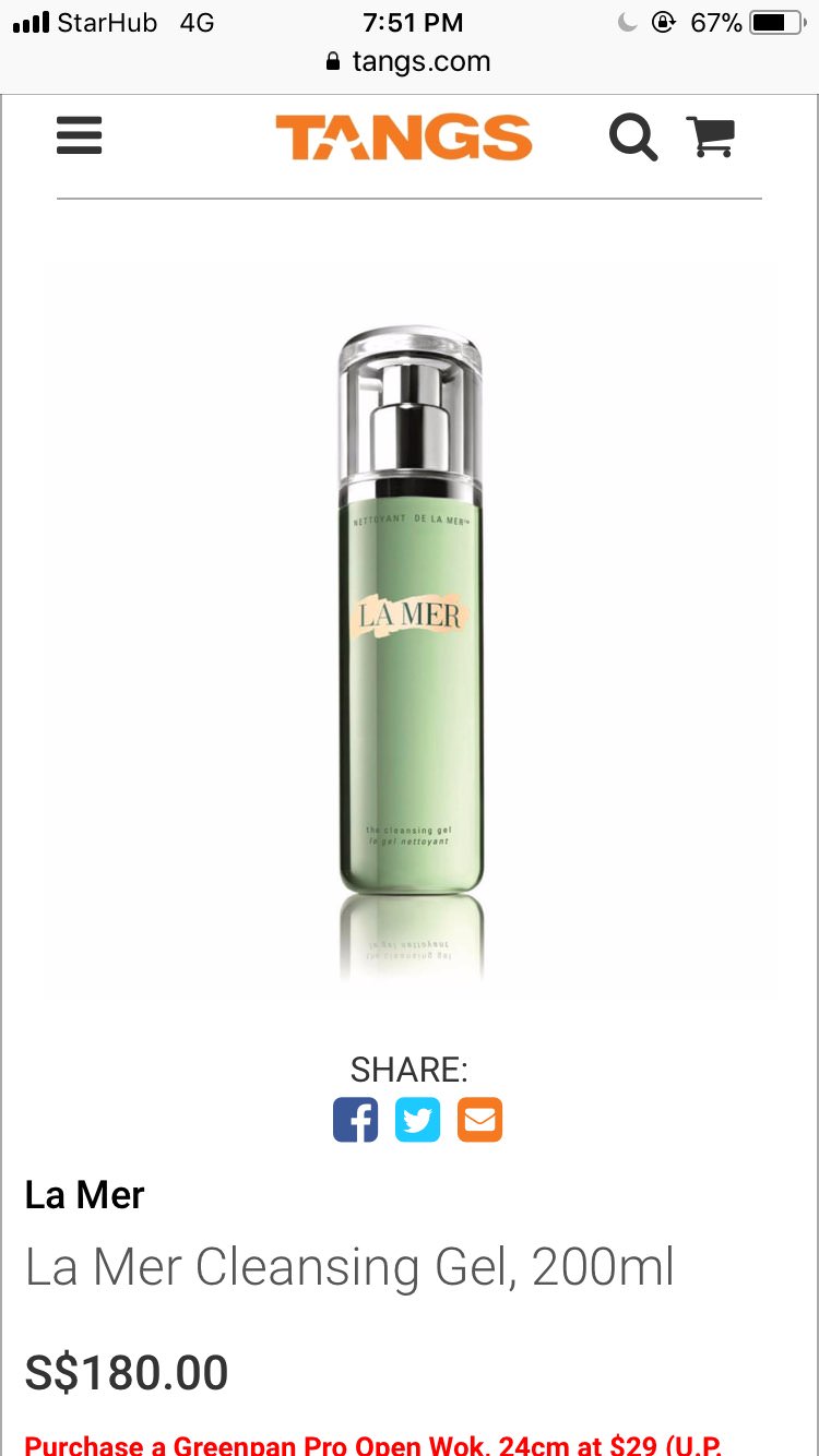3. La Mer Cleansing Gel 30ml $8跟其他一起$5专柜200ml $180