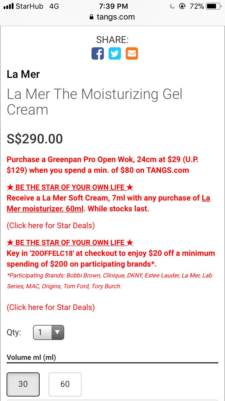 2. La Mer The Moisturizing Gel Cream 7ml $35专柜30ml $290
