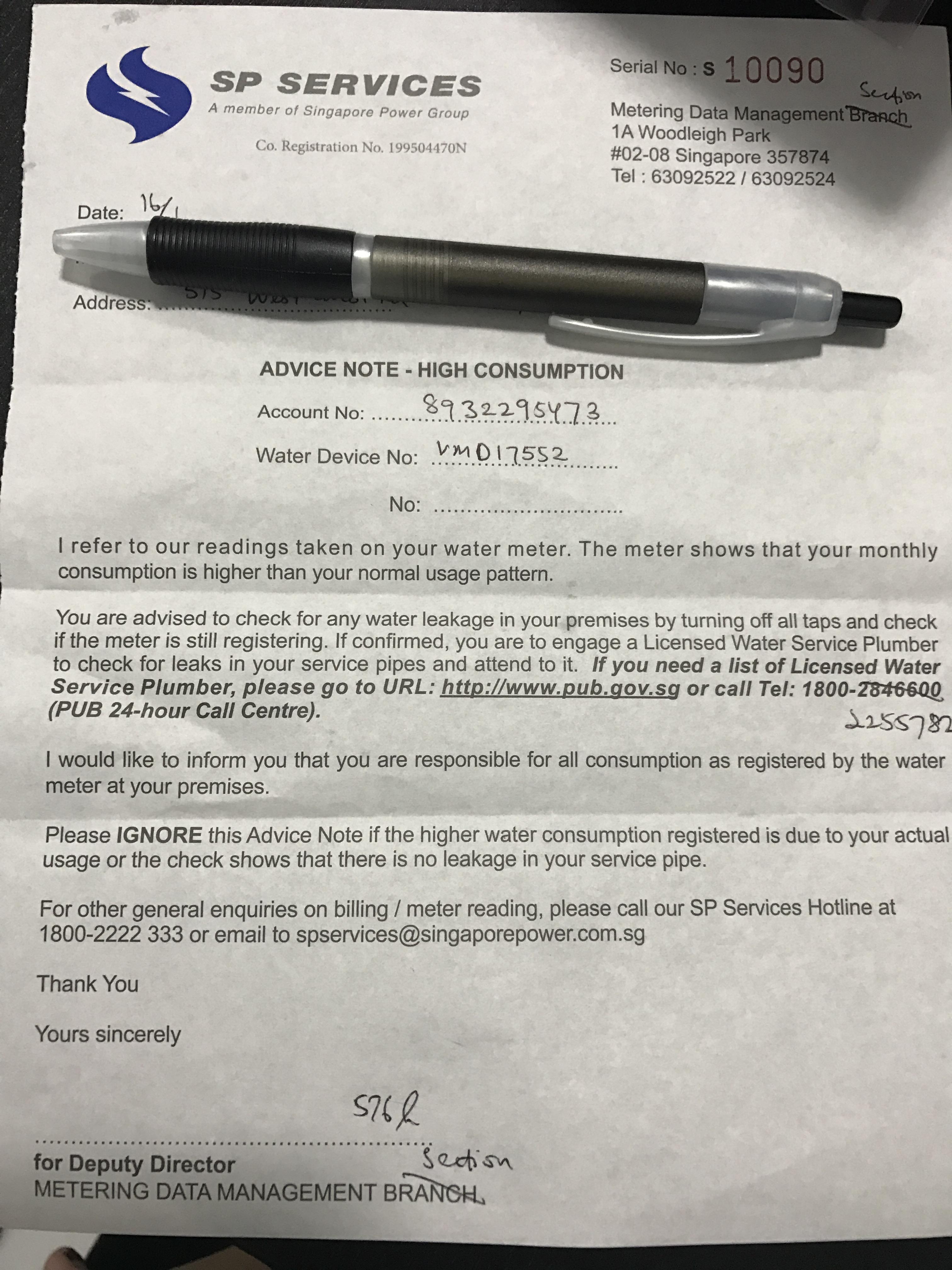 miachung • • 42062 次浏览前几天收到一张sp service的通知单,叫我们查看自己的水表有没有坏,检查方法是看用水时水表会不会走,停水时水表会不会停,如果有问题就联系某某公司。但我们按照这个方法检查了,没有事,就想说等水电费单子来了再看看数额如何,如果没有变化就不管他了。