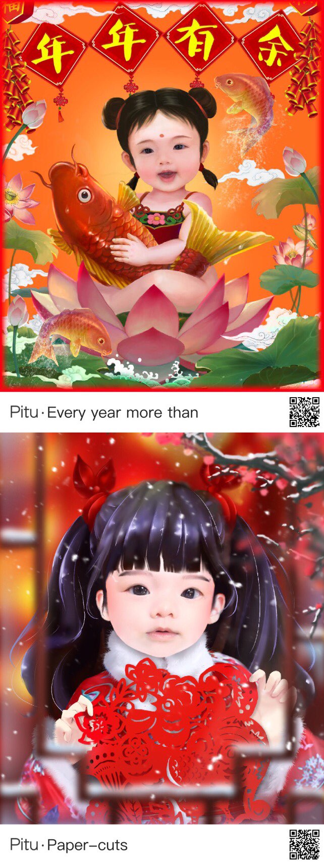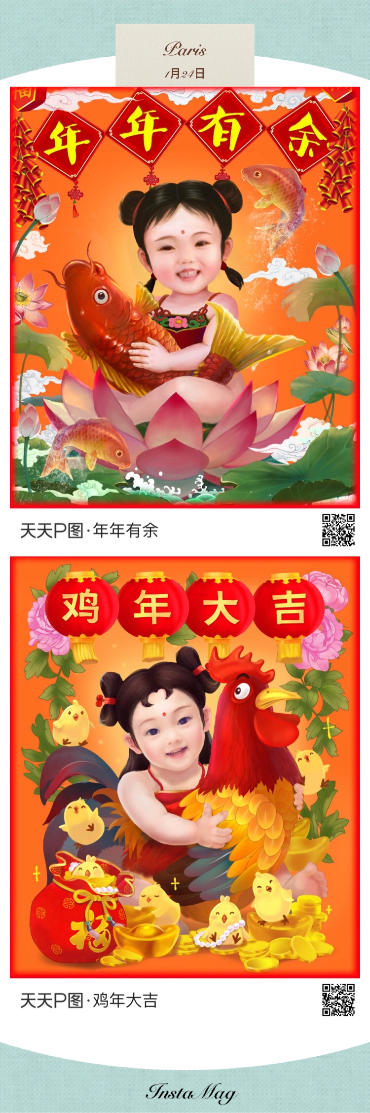 天天p图的年画娃娃好应景!快来帖自己家的年画娃娃