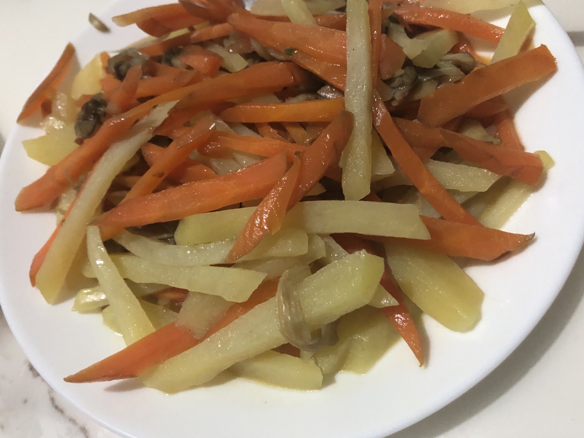今晚只有一个土豆条炒胡萝卜条