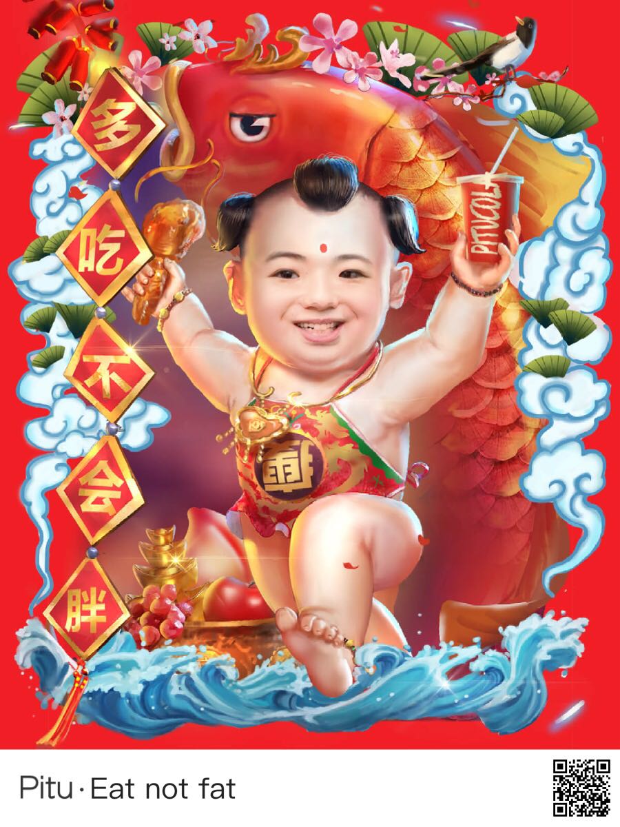 把我喜庆的儿子拉来凑热闹~大家新春快乐啦~~