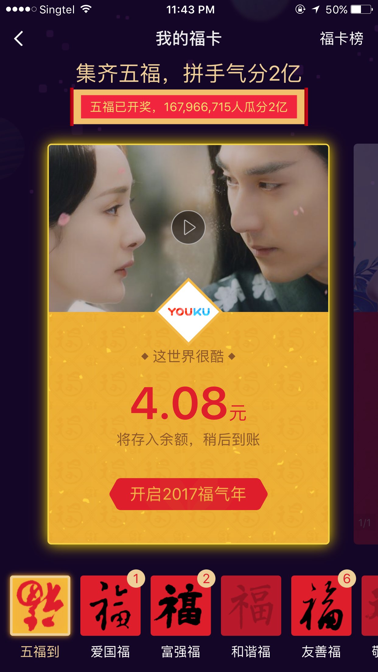 不过能凑上五福就不错啦,新年发大财哦 -