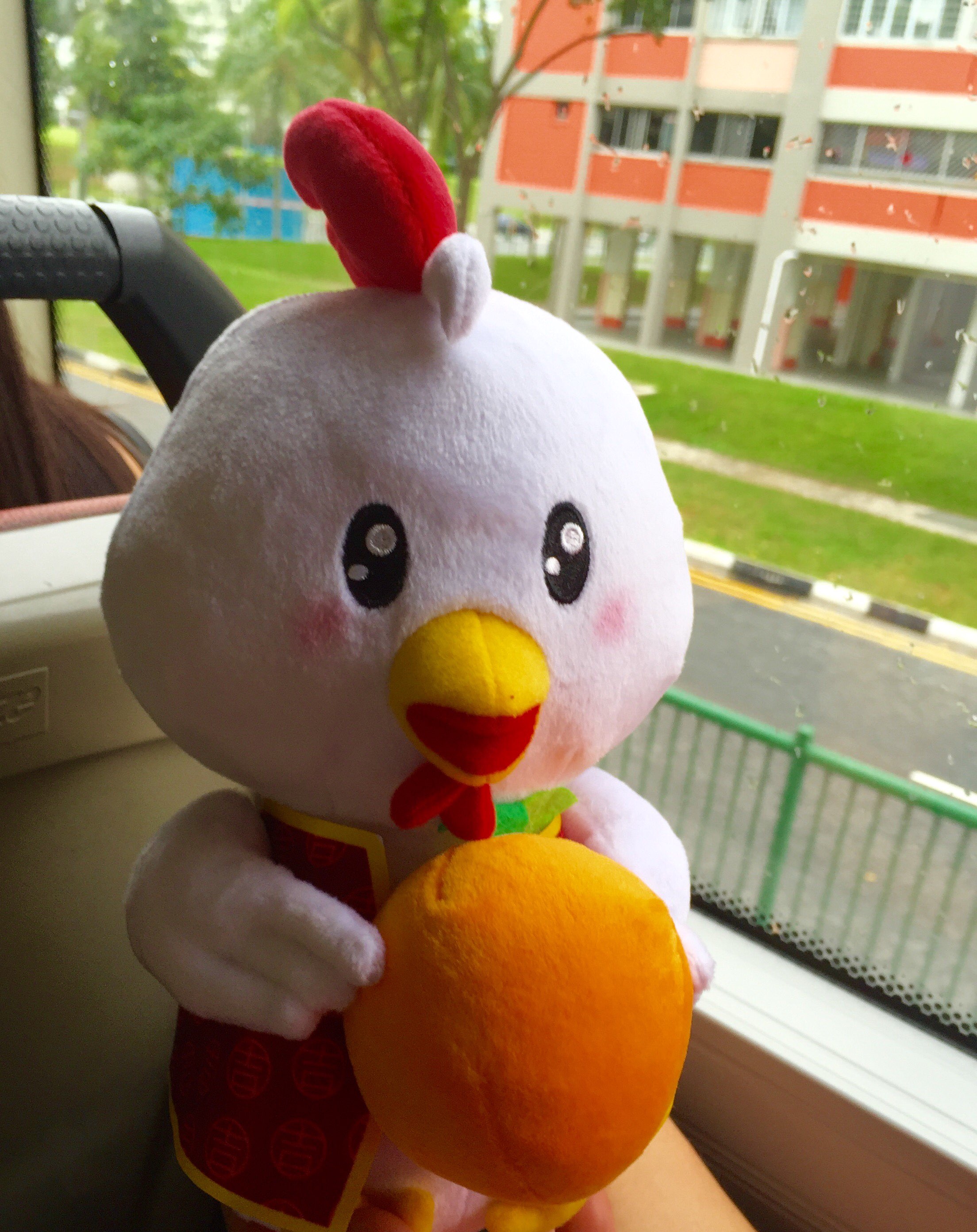 上午十二点过经过simei站去changi airport beach park时,顺便去负一楼的裕华国货买了大概10新币的水啊零食之类的,送了这个可爱的鸡宝宝。回来时朋友去买食物,再问鸡宝宝一事,答曰:购物满88送一只。咋就这么大差别呢?