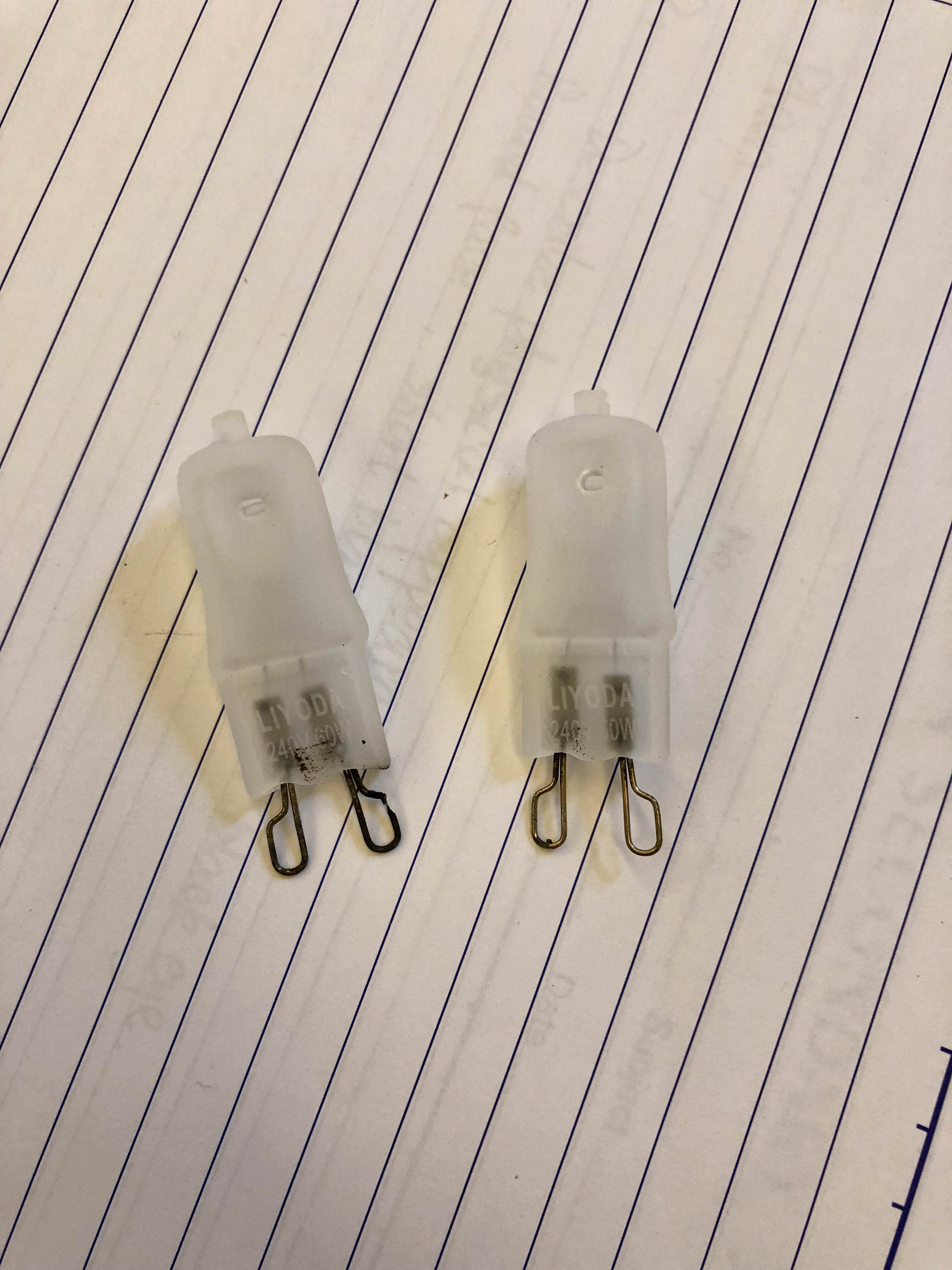 看起来像是G9型的灯你去lazada或者Qoo10搜一下就有很多。不知道你这灯是用在哪里的,看瓦数很高啊。我的车里面的小灯似乎就是这个,不过是LED的。