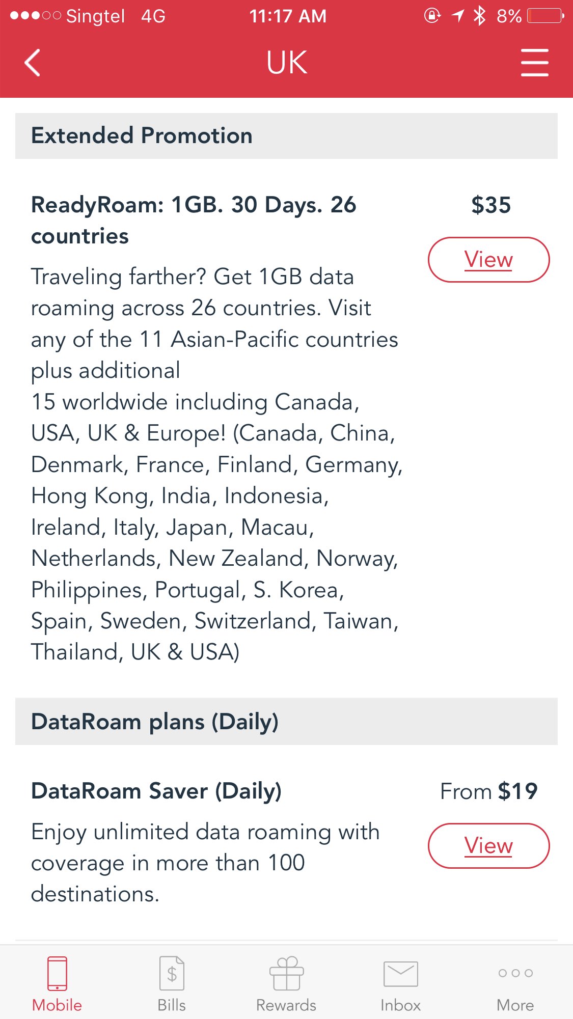 singtel 英国35元,30天,1g数据数据