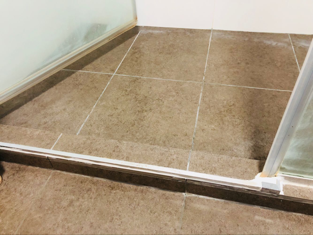 顺便一提,如果浴室里面有自带shower screen玻璃门的,也要自己从里面往门上洒水一阵子看看门漏不漏水,确保将来洗澡的时候,真正能做到干湿分离。我家的就一直会漏一丢丢,换了挡水橡胶条,但还是修也修不好。虽然不是完全不能接受,自己洗完澡拿拖把拖一下就好,但是觉得烦。开发商最后给额外装了一个金属条在水沿上挡水。