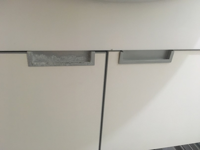 洗手台下面的柜子上的拉手,时间长了腐蚀得厉害,想换个新的。在国内淘宝上查了,尺寸稍微有点不一致,买了一个带过来,装上果然不太好。这里哪里可以买到呢?