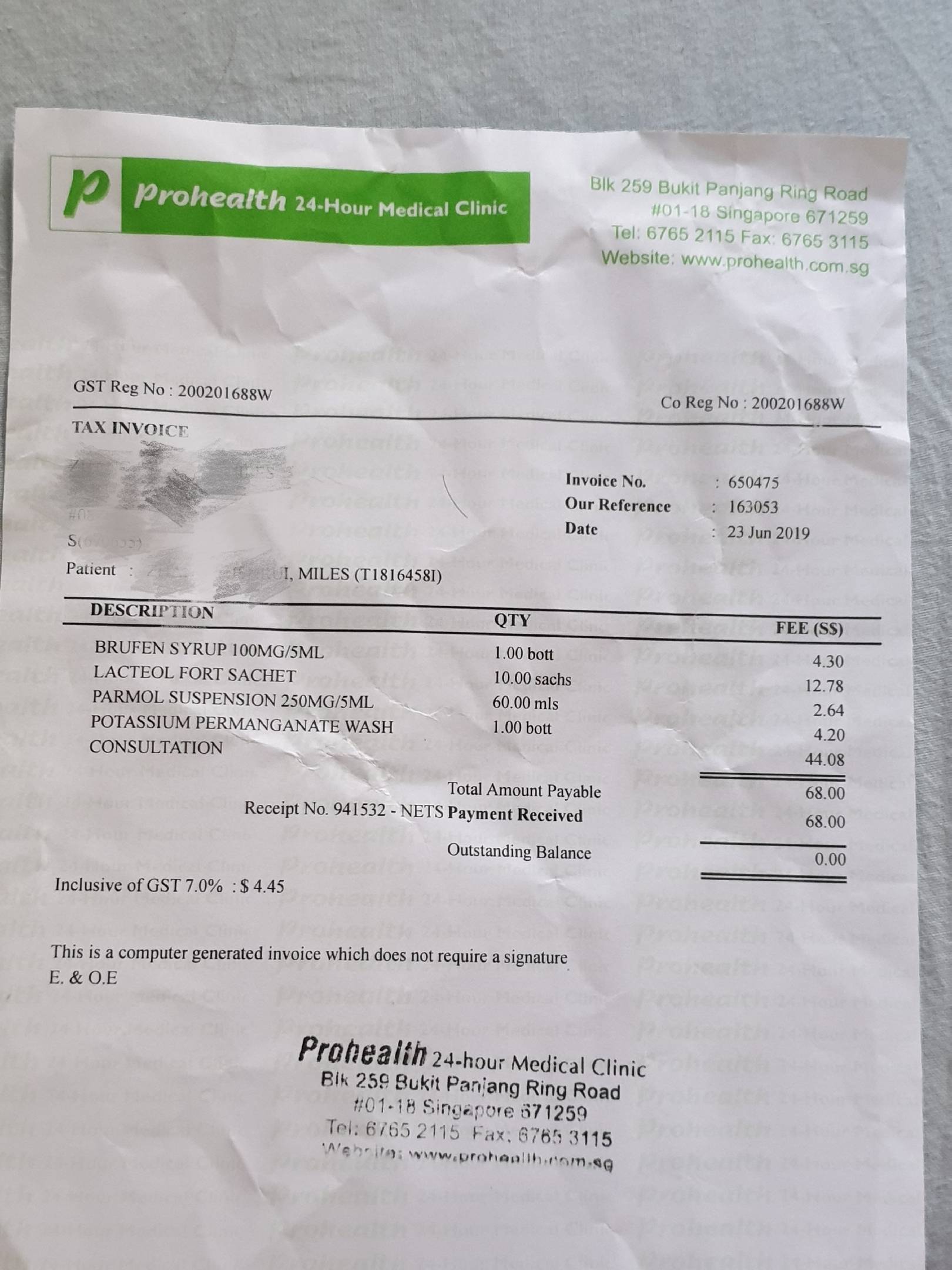 之前去polyclinc打预防针,也会给退烧药,也会交代37度半以下就不用再给药了,那种益生菌以前女儿7个月的时候腹泻,也有医生开过,是1天3次,每次1包,但是这个医生让我们1天2次,每次半包。回想起那个医生让人不舒服的态度,本能的没有用他开的药,而是用了polyclinc 给的退烧药 给了儿子1次5ml,和之前女儿腹泻医生开的药粉。