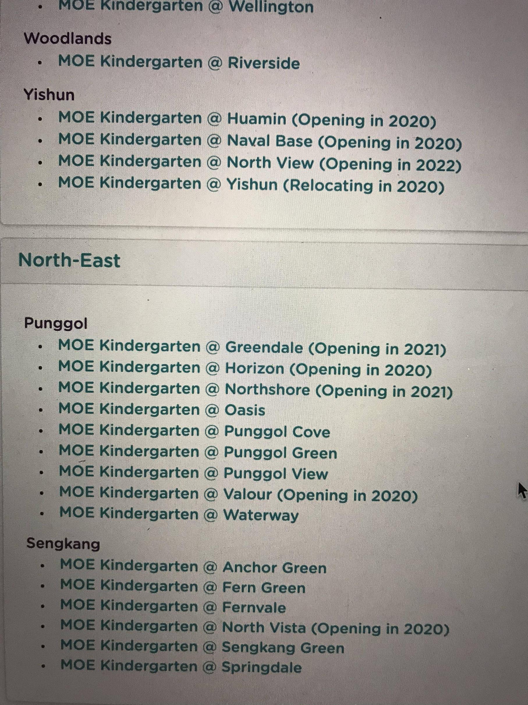 提醒一下大家如果你的小孩是在学校里面的MOE kindergarden上学的话他是2A(2)阶段报名的。这个事情恐怕在东北部是一件非常有意义的事情,因为接下来几年开始有好学校要开幼儿园了,比如说工商小学的MOE幼儿园2022年就开了,家住500米以内赶紧去咨询吧